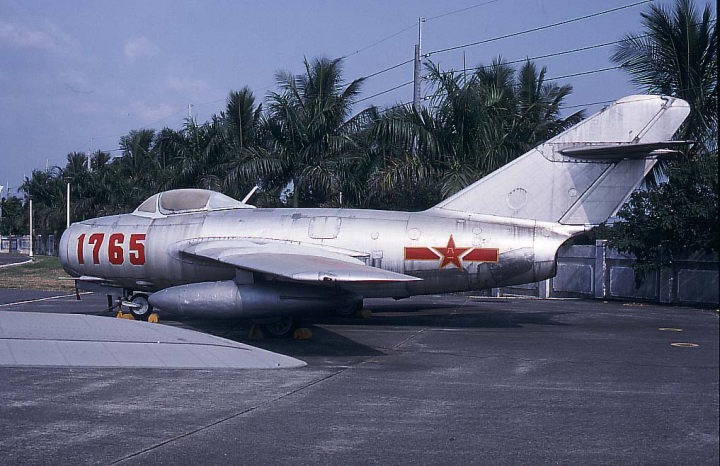 1987年11月19日に亡命したJ-6(40208)。パイロットは、福建省の基地から訓練途中に高度100メートル前後の超低空飛行でレーダーの追跡を逃れ 大陸に隣接する台湾領金門島の飛行場に舞い降りた。蒋文浩中尉24歳。