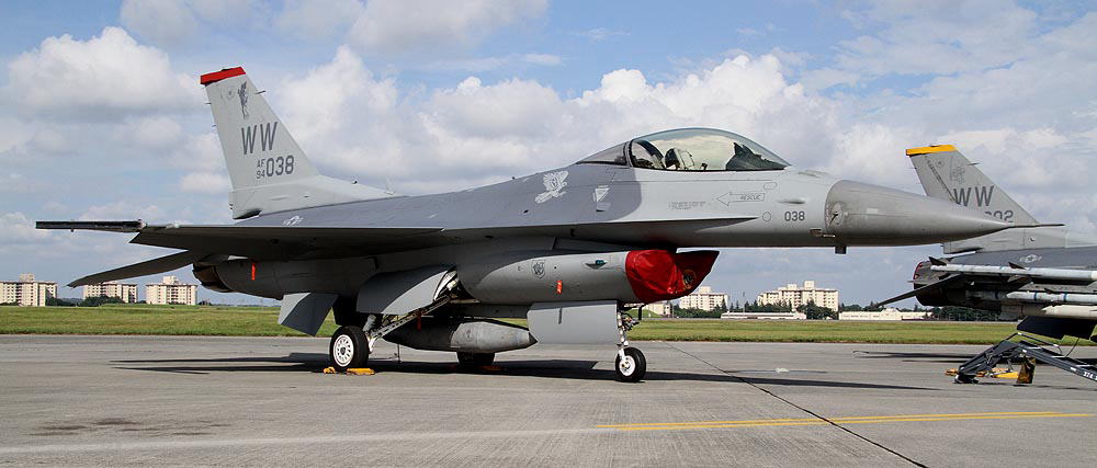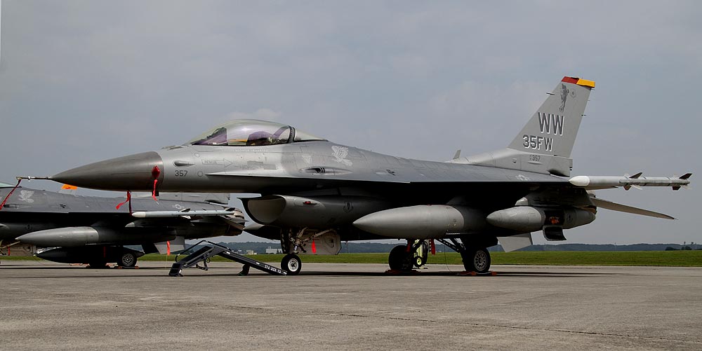↑ 2017年5月快晴の中、開催された岩国基地航空祭の飛行展示として常連となった第35戦闘航空団のF-16C/92-0893。Mark-01氏撮影