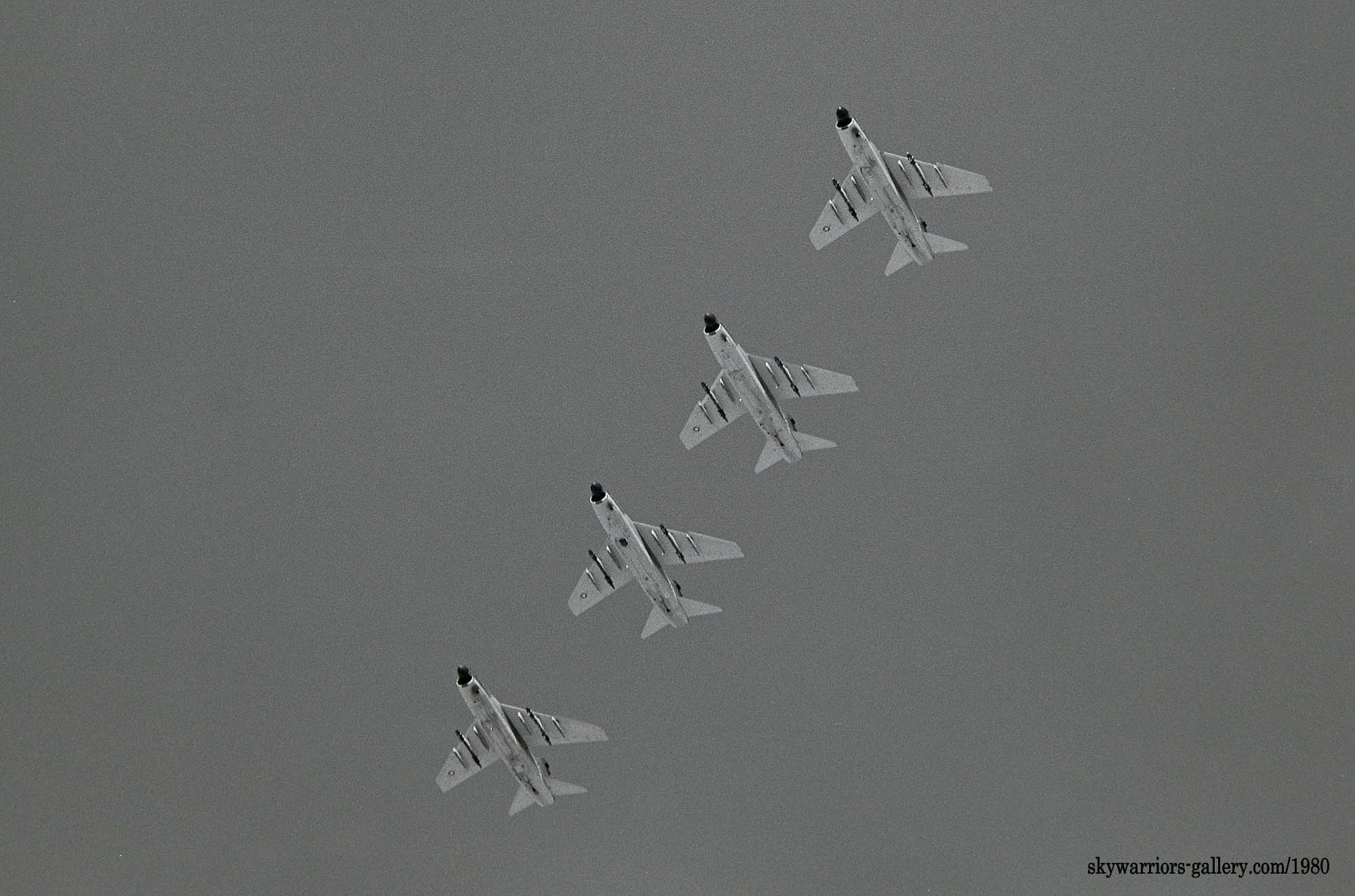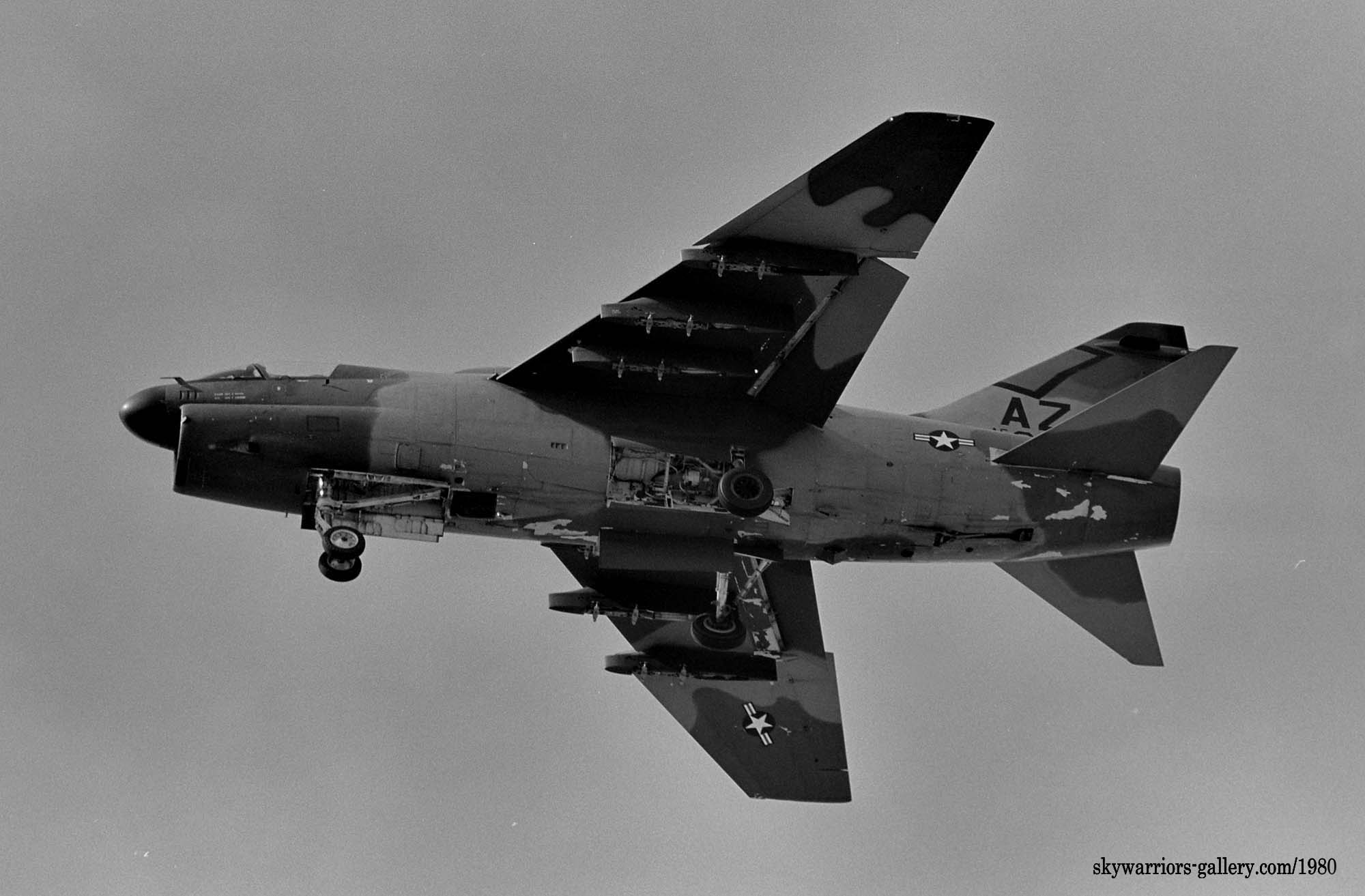 4機、続いて2機と従来の機体下面を白く塗ったA-7Dが下りた後、訓練を終えて戻ってきたのが、機体下面まで迷彩塗装した当時としては、最新のマーキングであるA-7D、我々にとっては珍しい存在で新鮮な印象を受けたが、数年も経たぬ内に全てこの手のマーキングに変更された。