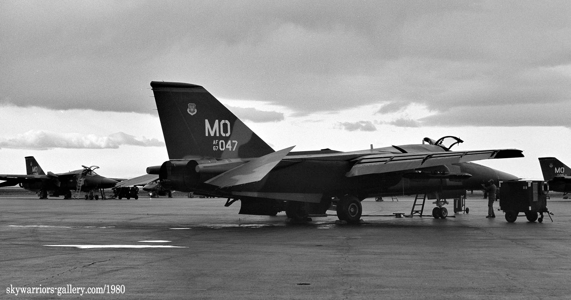 TFS、390th TFS、391th TFSの3個飛行中隊があったが、見分けられるのはフィンチップの帯の色だけである。この時エプロンには30数機のF-111Aが並び、誘導員、整備員等が忙しく動き回り、言い知れない緊張感が漂っていた。