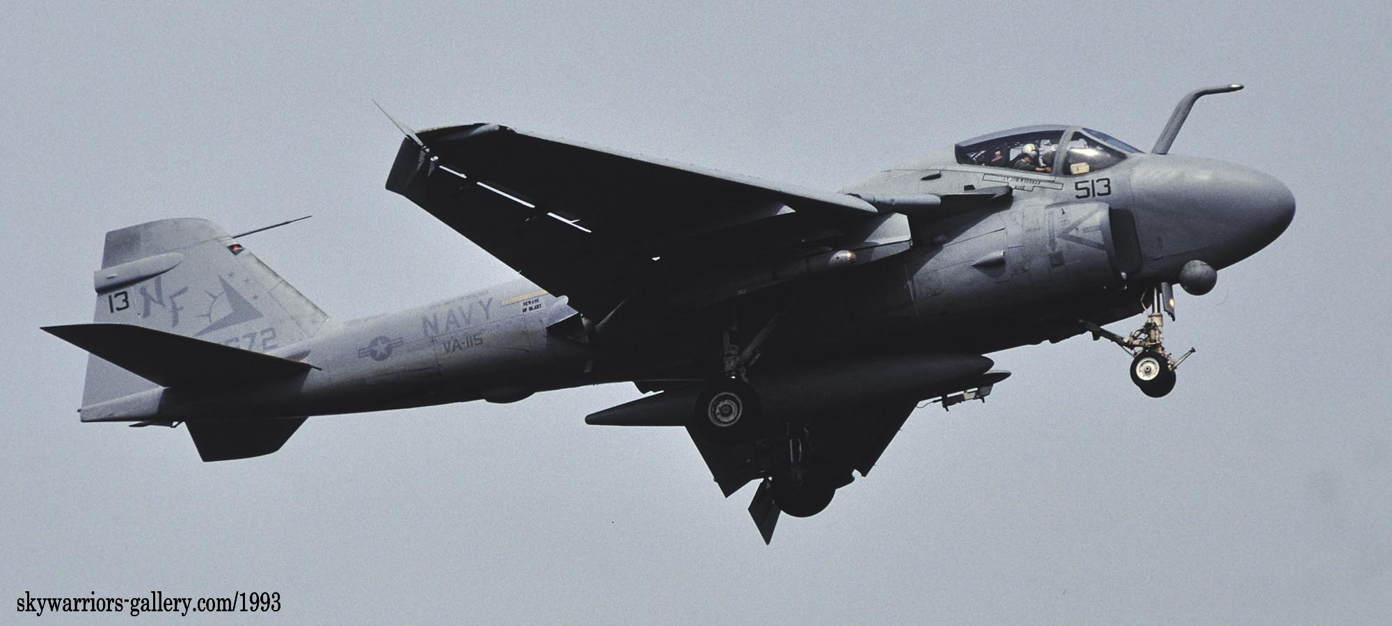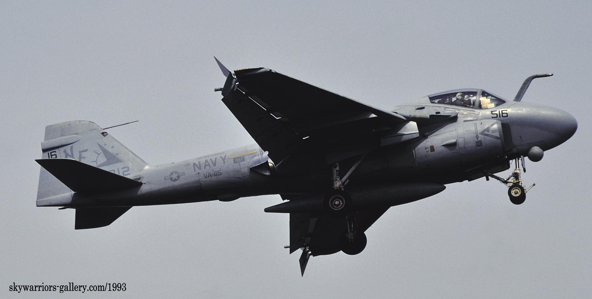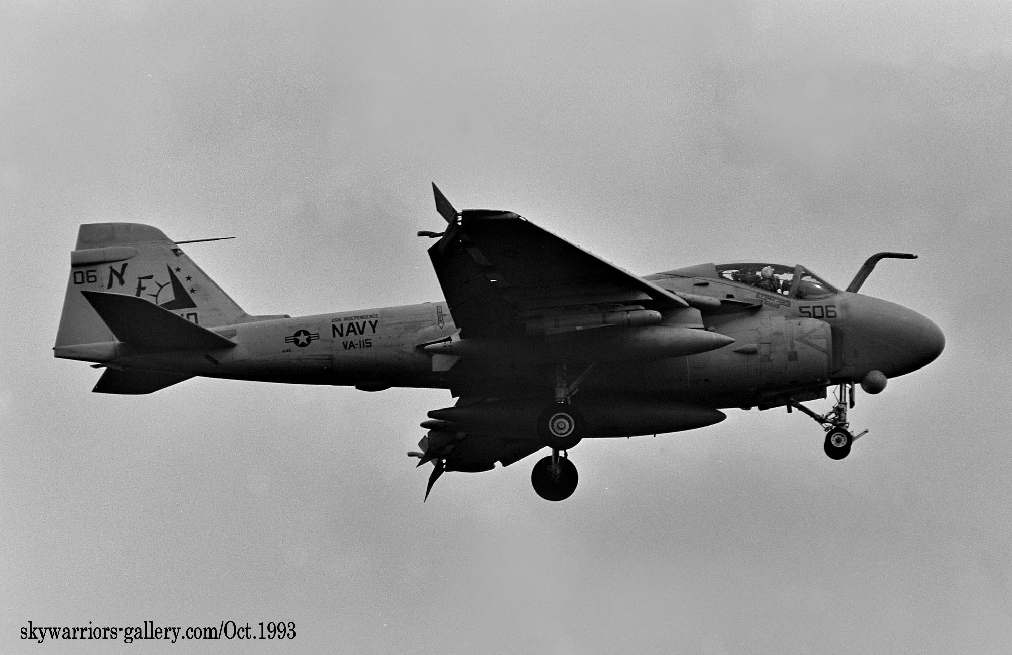 ↑ 1993年初夏 厚木基地で飛行訓練を行うVA-115のA-6E。