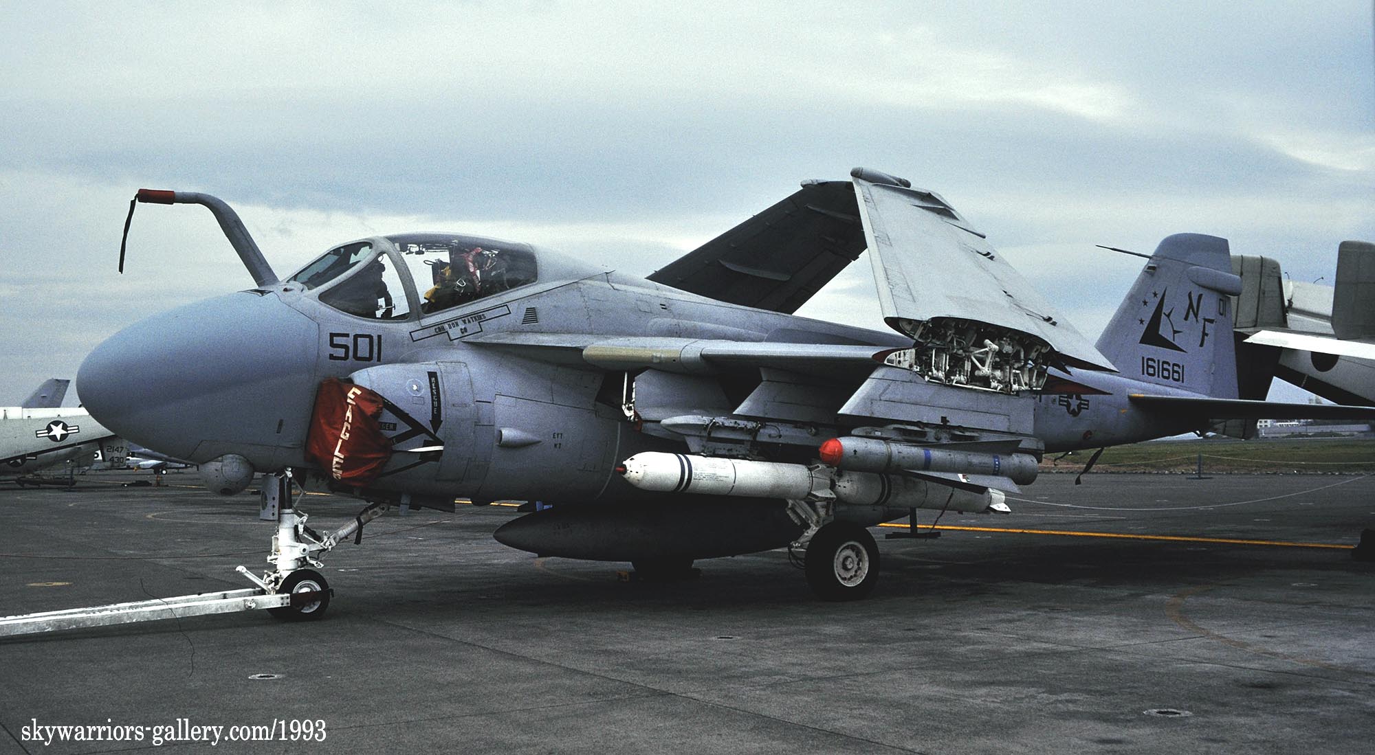 ↑ 1993年のWing93の際、厚木基地内で展示または駐機していたVA-115のA-6E。