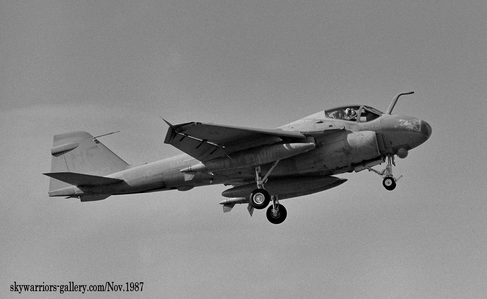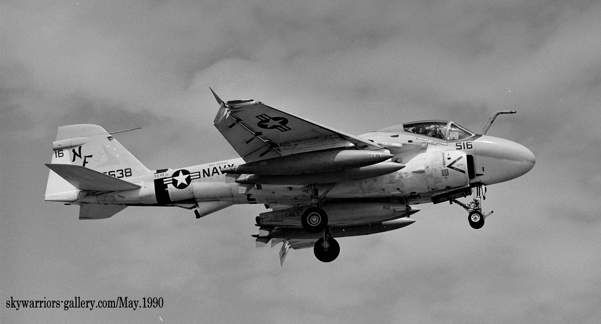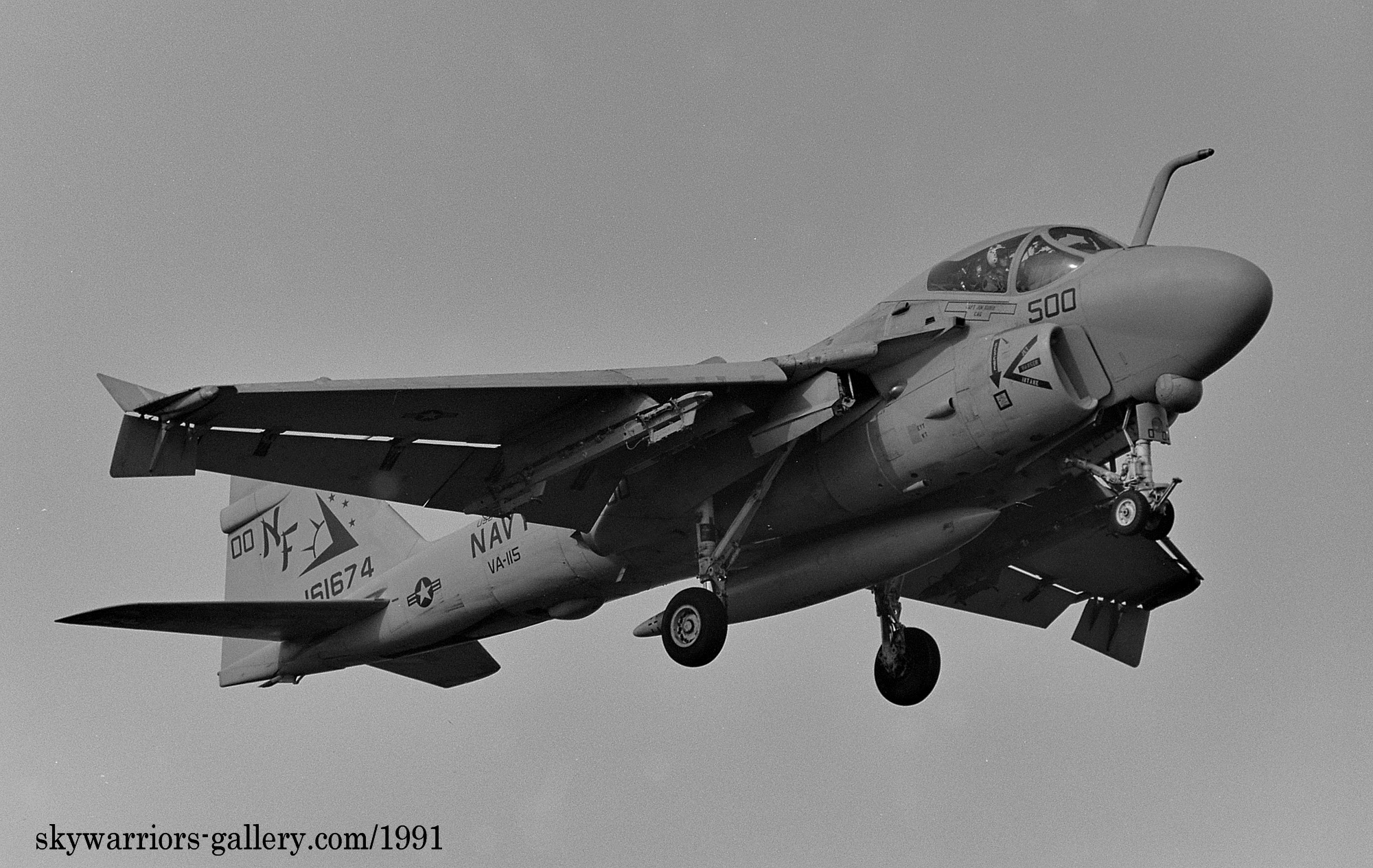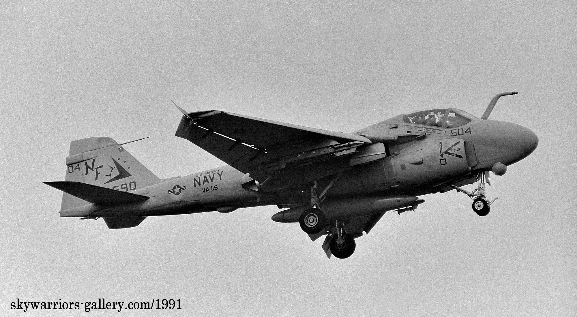 3個飛行隊に変更された頃には、A-6E部隊も例にもれずVA-115に加わってVA-185も配備され、KA-6の一部を除きグレー色にすっかり染まった感がある。1991年の湾岸戦争にも参加しているが、この頃には機首下面にTRAMセンサーターレットと呼ばれる目標識別パッシブセンサーを付けた機体が主流となり、レーザー光を出すこともできるのでレーザー誘導爆弾での攻撃でも力を発揮できるようになった。マーキングについては1994年頃から隊長機に限って色が付き始め、海軍機ファンにとって嬉しい状況に展開している。