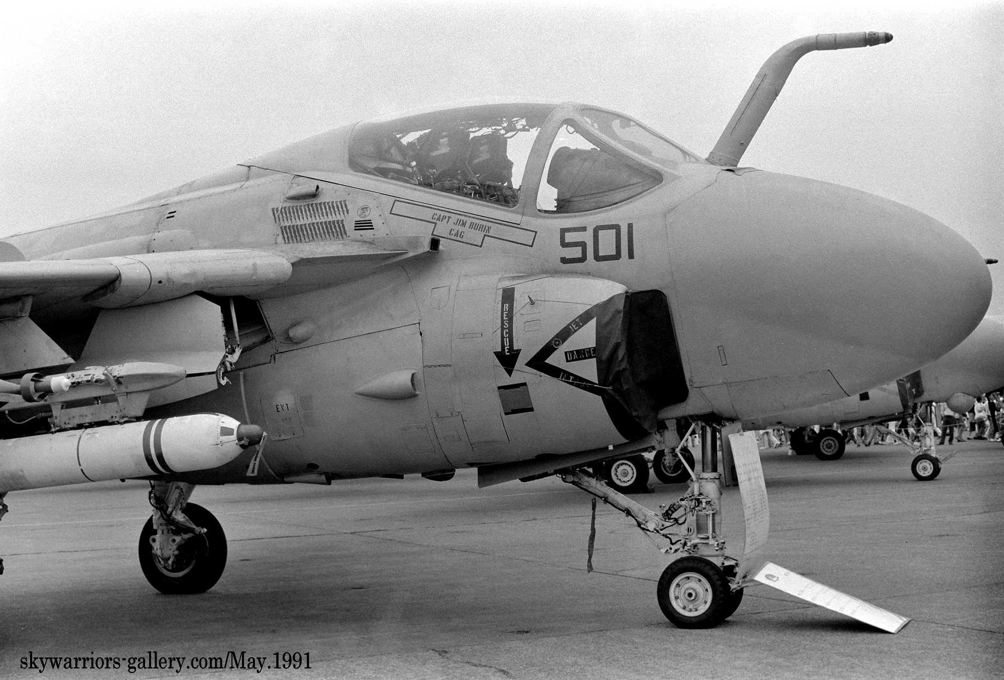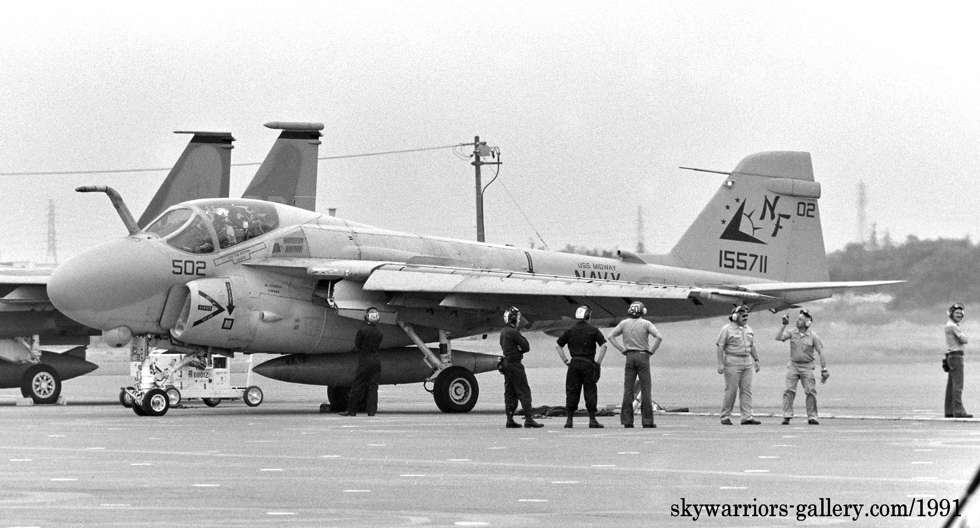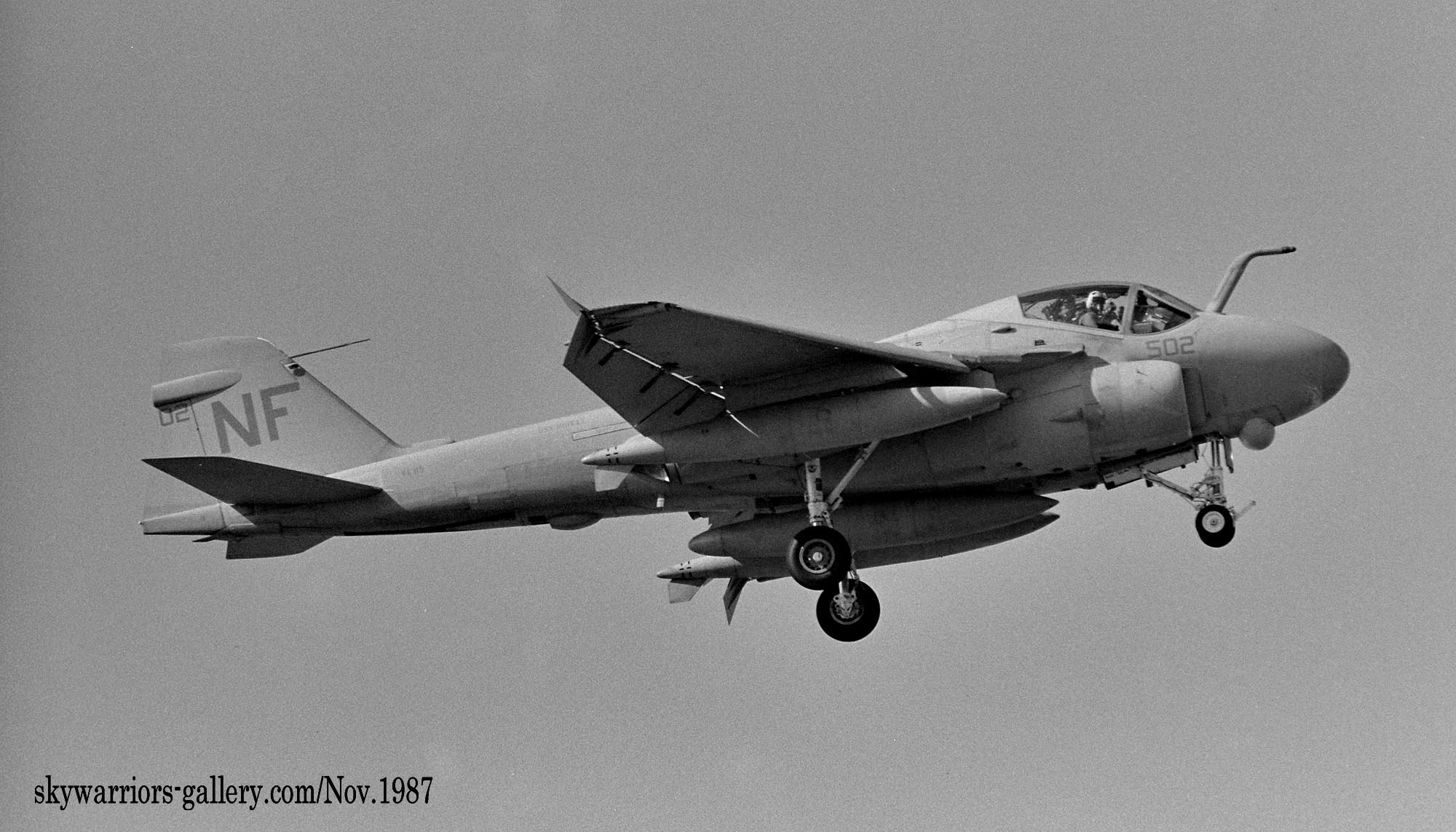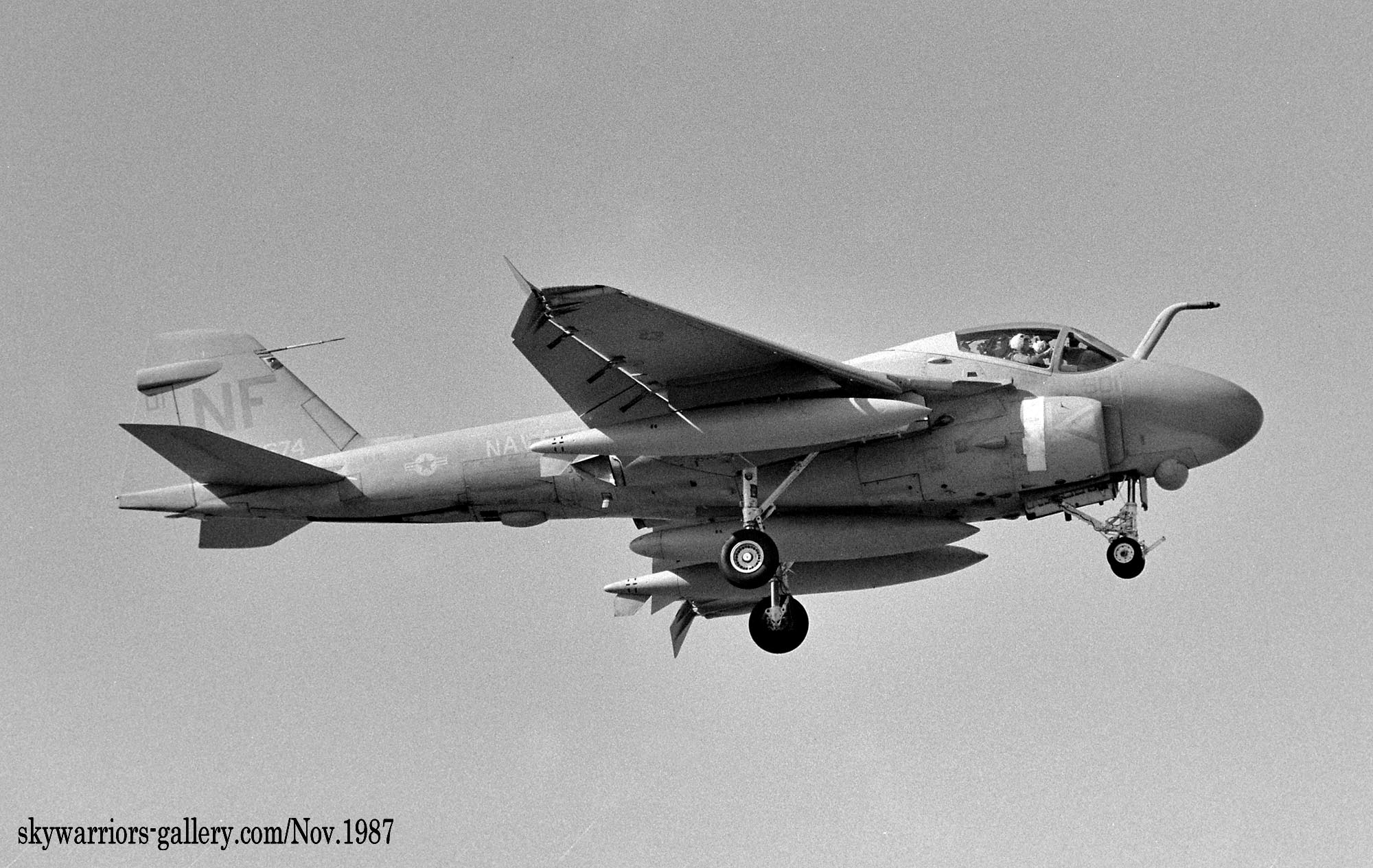 3個飛行隊に変更された頃には、A-6E部隊も例にもれずVA-115に加わってVA-185も配備され、KA-6の一部を除きグレー色にすっかり染まった感がある。1991年の湾岸戦争にも参加しているが、この頃には機首下面にTRAMセンサーターレットと呼ばれる目標識別パッシブセンサーを付けた機体が主流となり、レーザー光を出すこともできるのでレーザー誘導爆弾での攻撃でも力を発揮できるようになった。マーキングについては1994年頃から隊長機に限って色が付き始め、海軍機ファンにとって嬉しい状況に展開している。