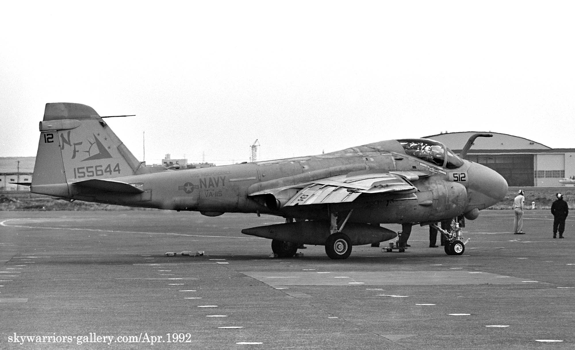 ↑ 1992年3月 新来のF-14Aトムキャットと共に厚木で飛行訓練をするVA-115のA-6E。