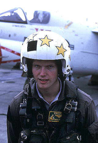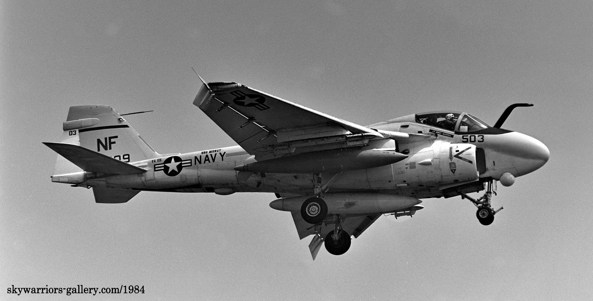 ↑ 母艦が空母ミッドウェイから空母インディペンデンスに代わり、A-6Eの機体にも新しい母艦名が書き込まれている。