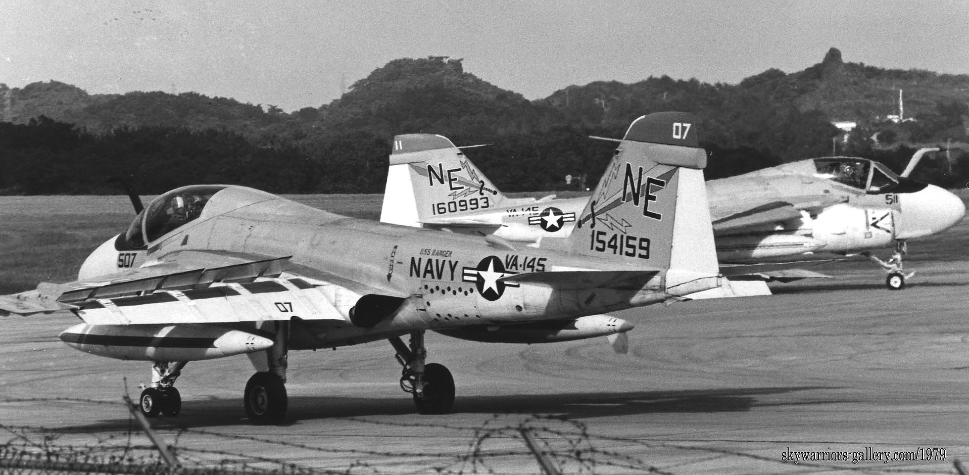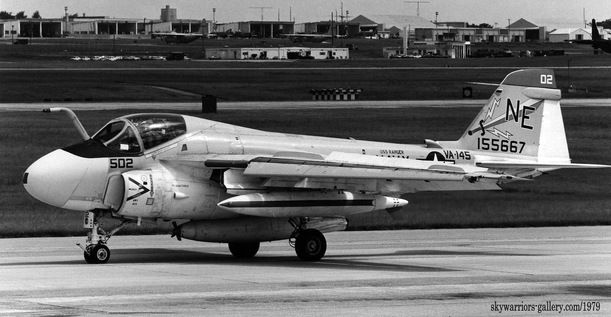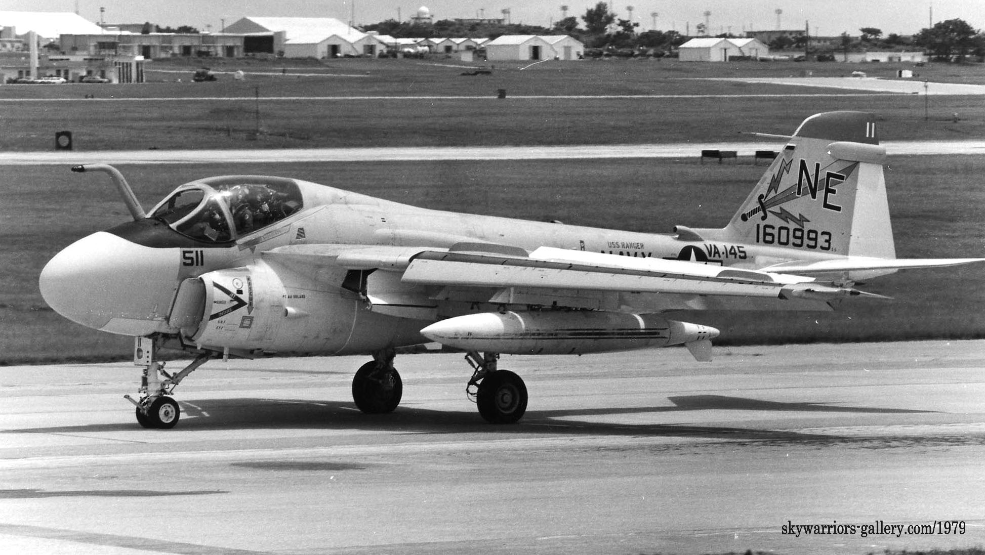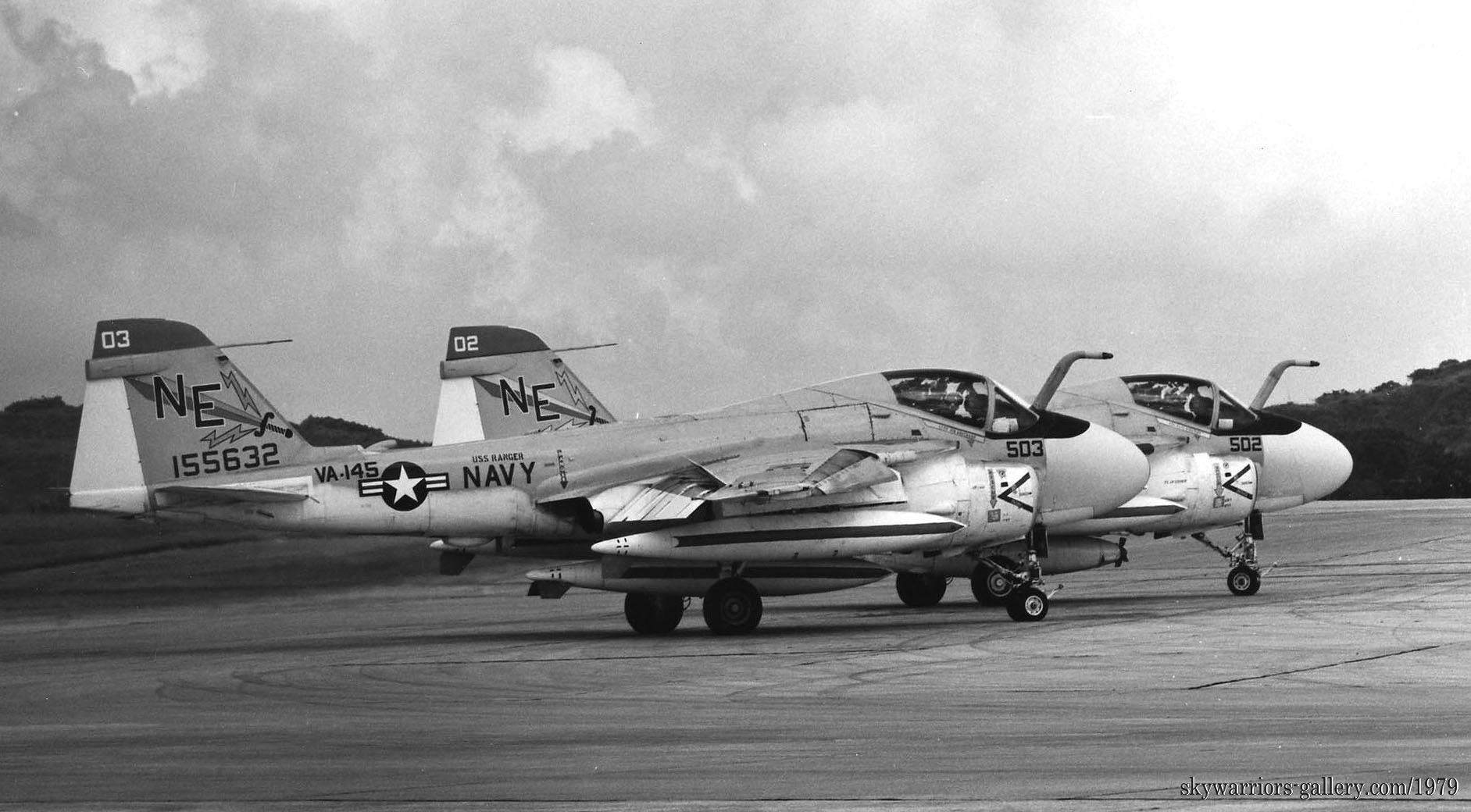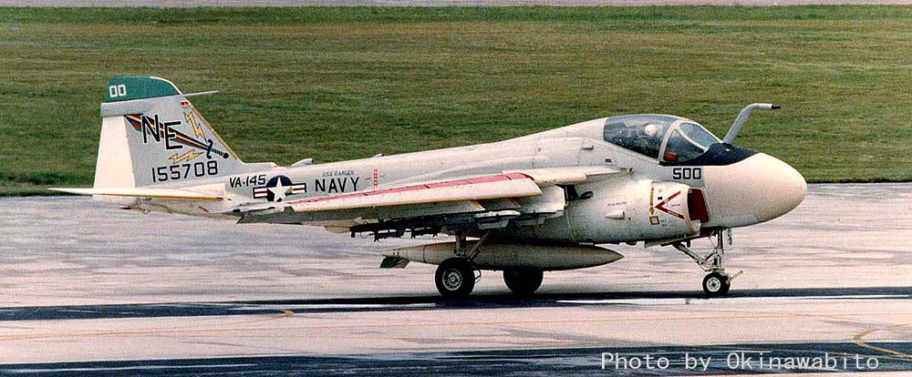 下写真は、1979年7月嘉手納に飛来した4機のA-6E。どれもUSSレンジャーからの飛来でフルカラーのVA-145所属機であった。