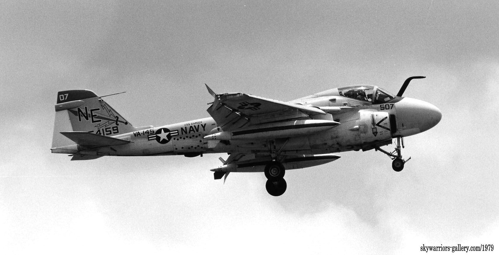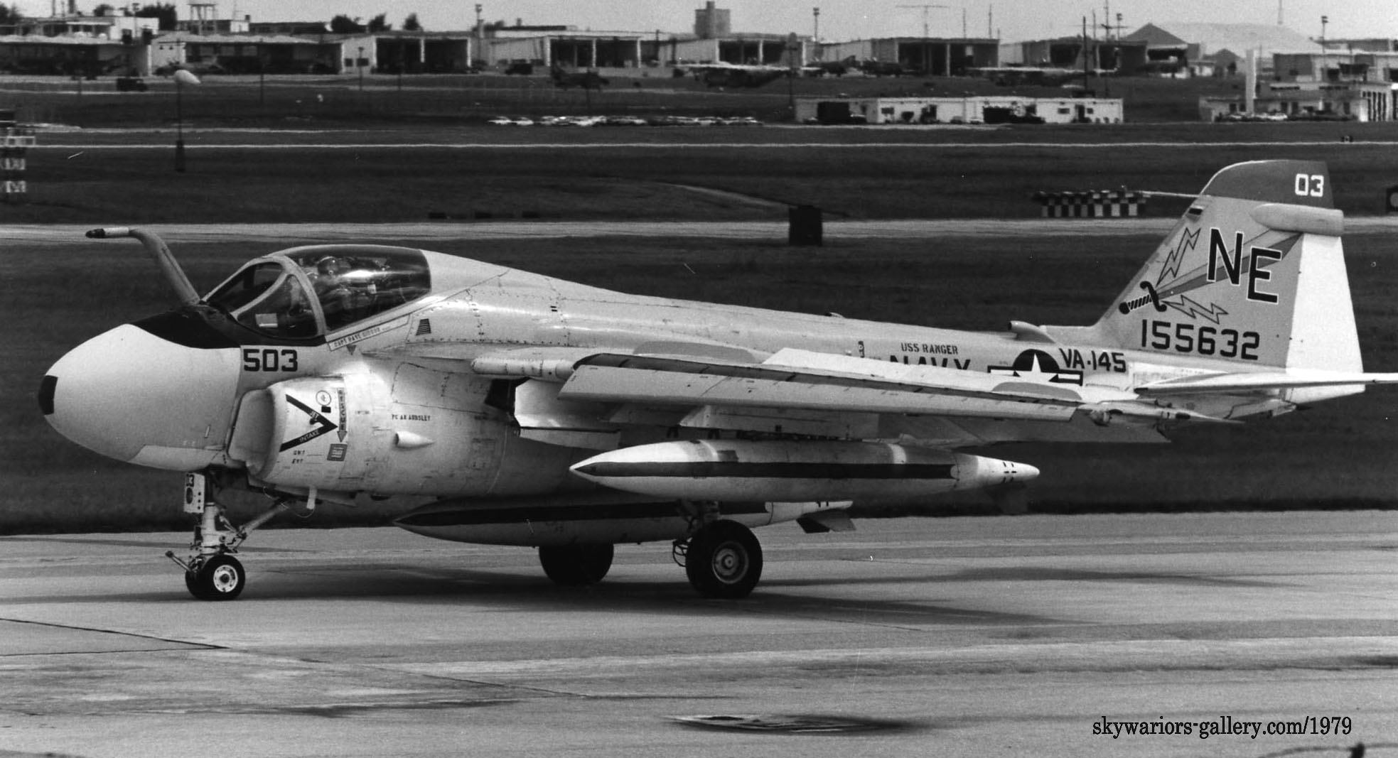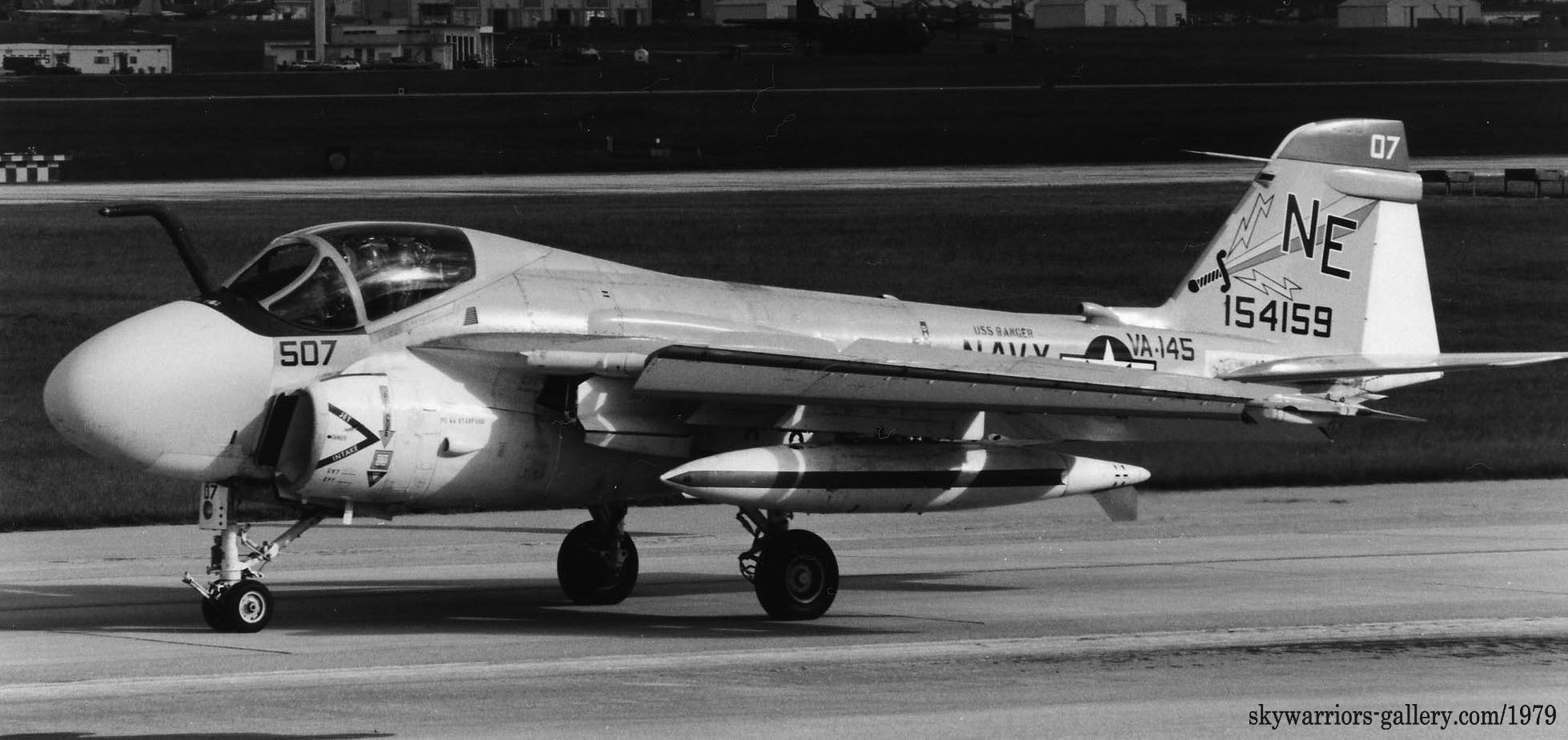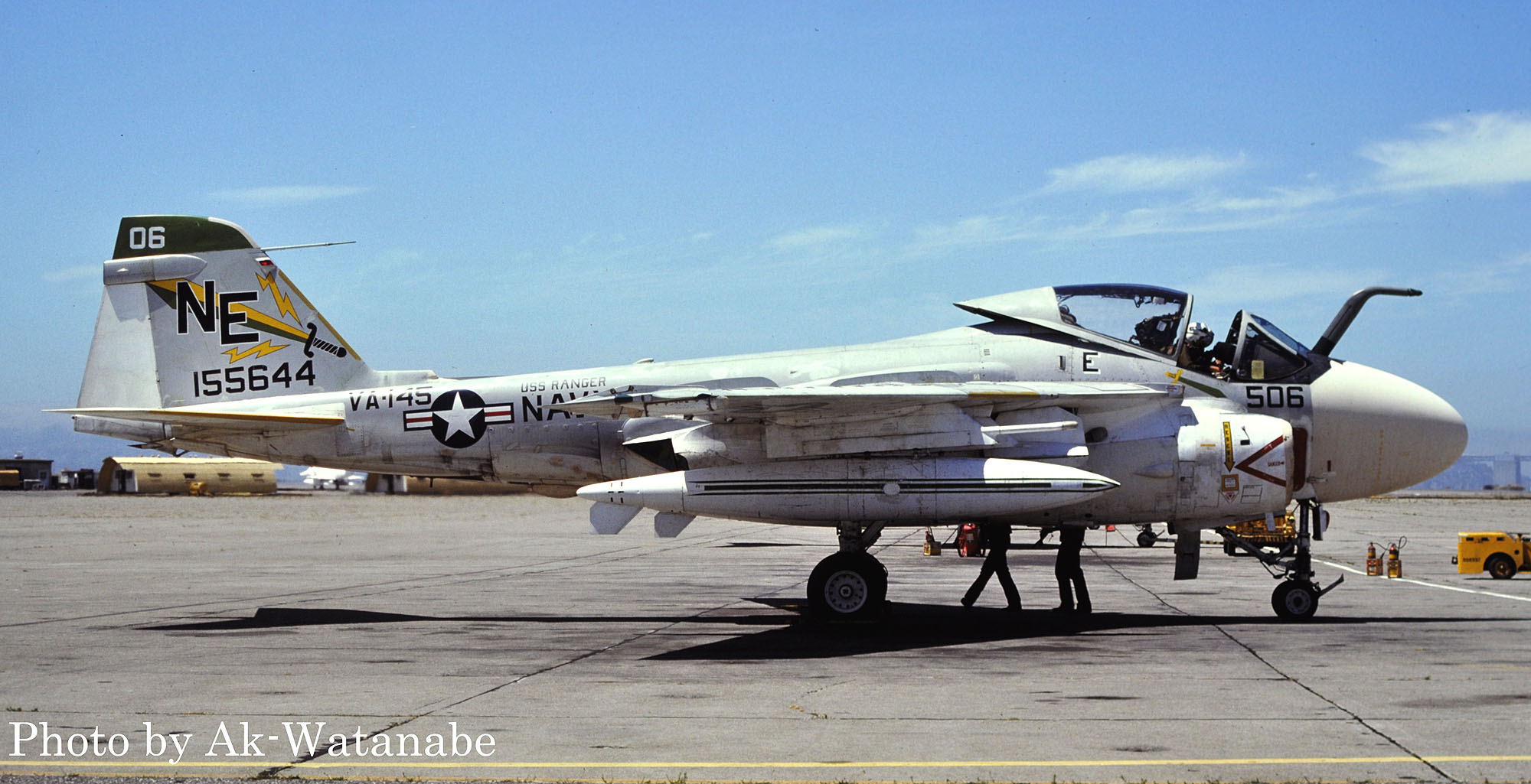 下写真は、1979年7月嘉手納に飛来した4機のA-6E。どれもUSSレンジャーからの飛来でフルカラーのVA-145所属機であった。