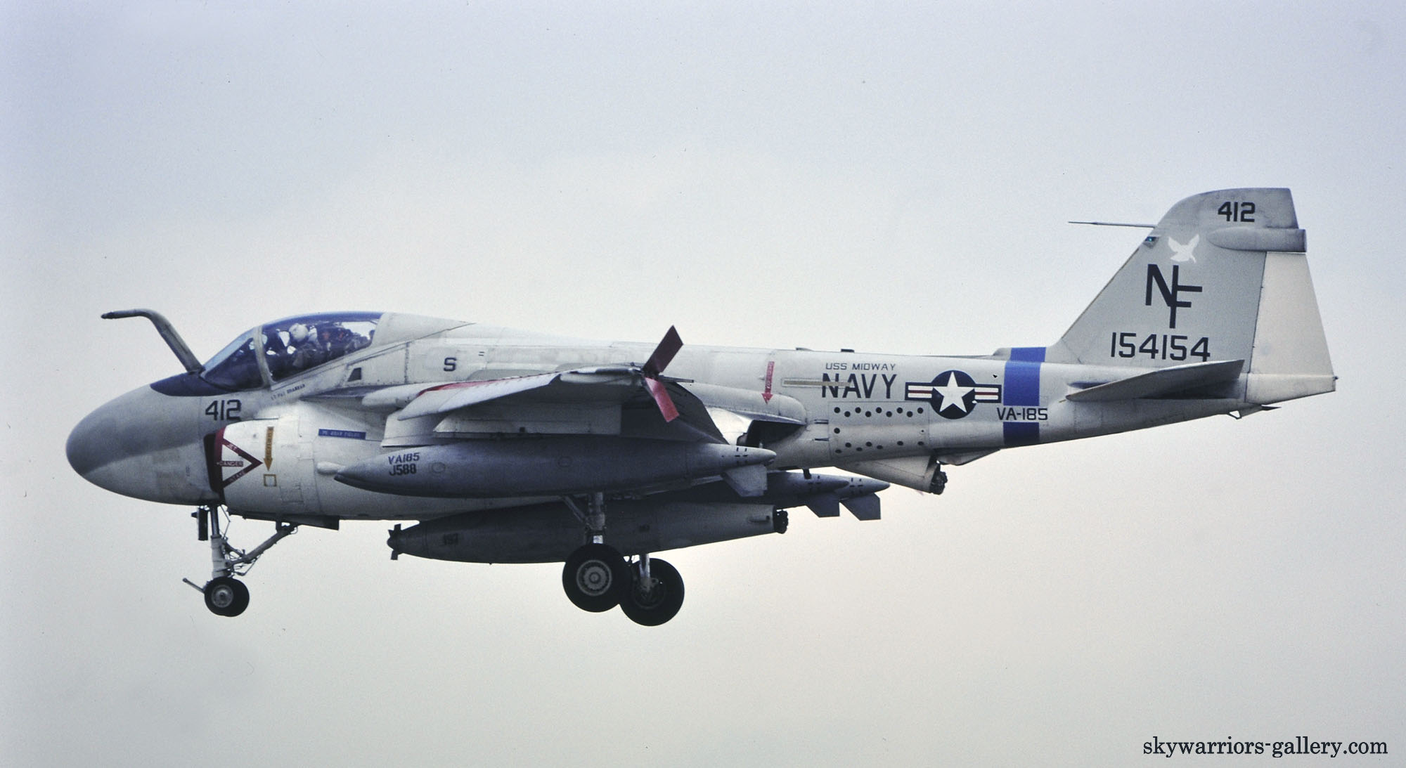 1991年8月6日 厚木基地にてVA-185の解散式が行われ、同隊はミッドウェイ級空母の退役と共に消えて行った。解散時残っていた同隊のA-6E 7機はVA-115に移管され、KA-6Dは本国に帰還したと報道された。