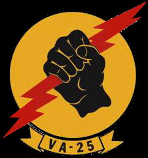 このマークを付けたVA-25のA-7Eをこの目で見る事が出来たのは、1979年沖縄の嘉手納基地である。この夏飛来した多くのVA-25のA-7Eは鮮やかなグリーンで尾翼を塗りこめ、尾翼の中心に右のマーキングが描かれて印象的だった。しかし、実は私自身もその時までこの部隊のことをあまり知らなかったのである。