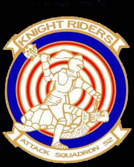 尾翼にナイトの兜をあしらったVA-52は、1950年7月に創設された部隊である。我々厚木のマニア諸氏の前に現れたのは1977年11月のキティ・ホーク入港の時だった。A-6攻撃機の尾翼を飾るマーキングとして実にシンプル且つユニークで、機体の背と燃料タンクに書き込まれたブルーの矛がとてもかっこいい!以前は所属下のA−6Aの尾翼の兜が、各機でそれぞれ違ったデザインだった時期もあり、マーキングに関しては興味が尽きない。NH-500は、兜のクレストがCAGの各部隊カラーで塗り分けされワンポイントながら絵になる機体だった。1995年にFA-18に改編する事も無く解散してしまったが、私にしては復活してもらいたい部隊の筆頭だ。兜の目の部分が尾翼のACL(衝突防止灯)となっており、厚木で夕方遅くエプロンに並ぶVA-52のA-6EがACLをつけるとナイトの目が光るようで興奮したものであった。(2006年6月 記)