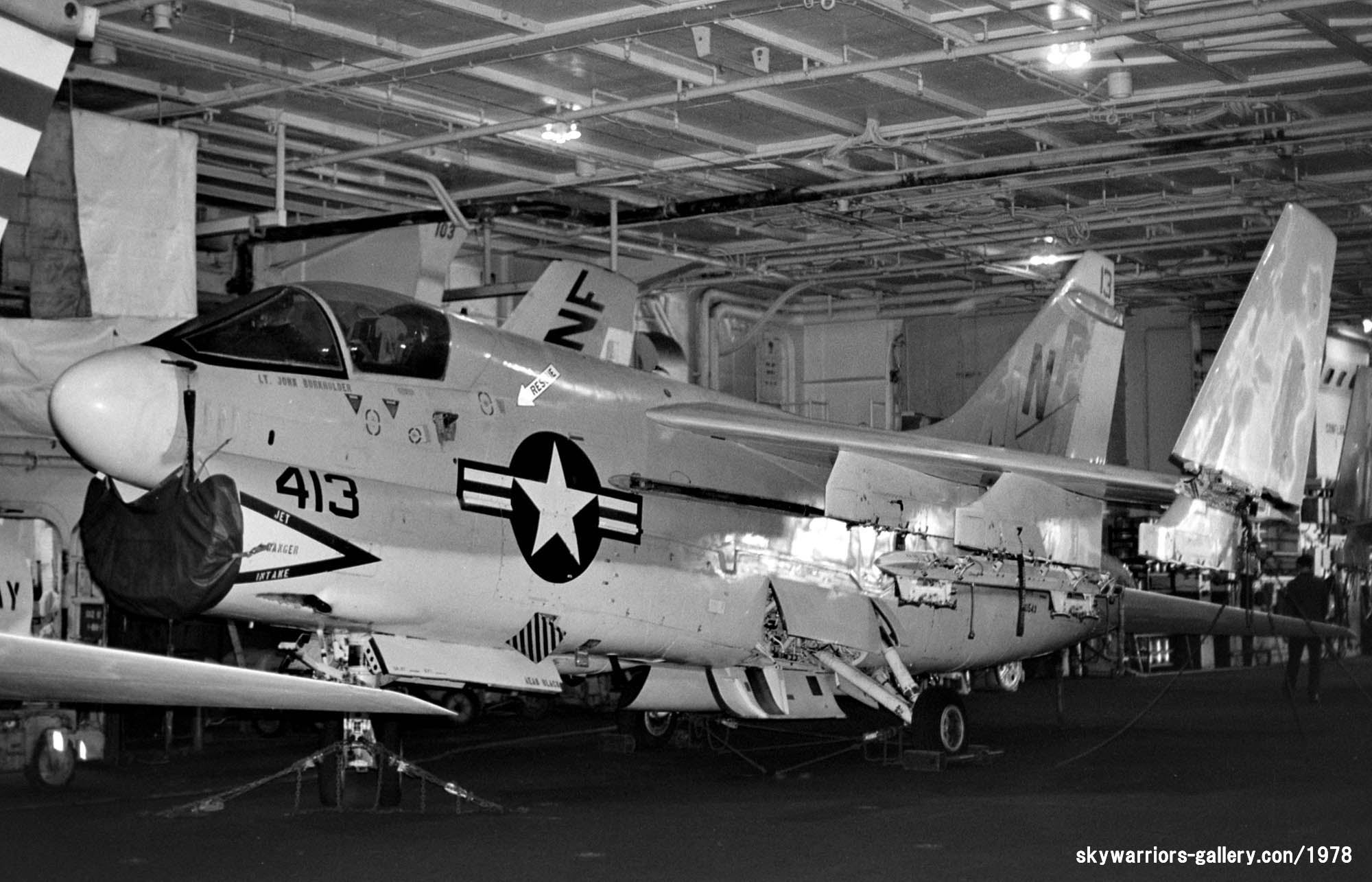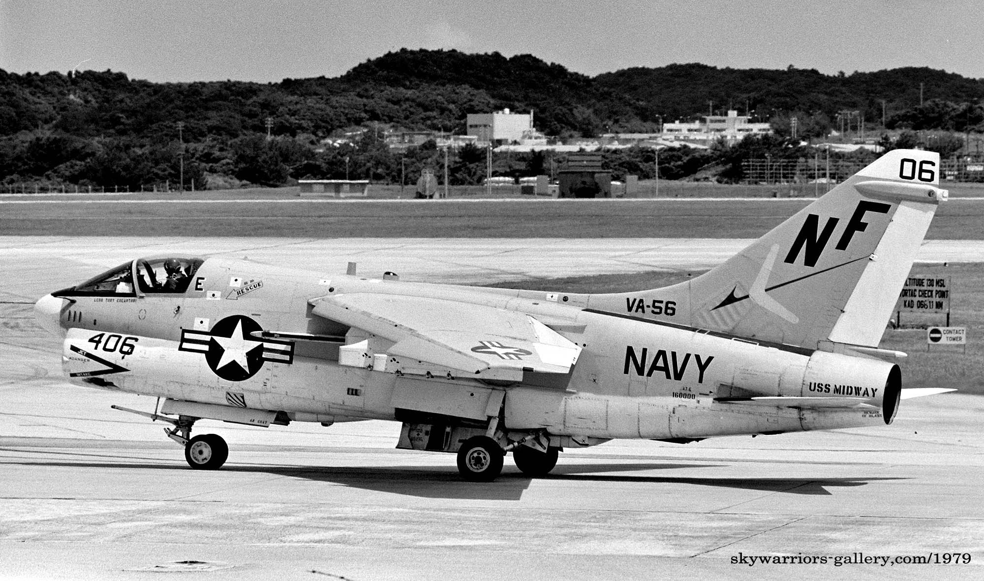 1956年に生まれF9F-3パンサーを受領して始まったVA-56の歴史は、その後クーガーやフュリーと言った戦闘機を経て、A4D-1~A-4E,C,Eと4種のA-4スカイホークを入れ替えながらベトナム戦を戦った。A-7コルセアに機種交換後もB型、A型、E型と当時の最新のものを使って戦闘の前面に出ていたのである。A-4スカイホーク使用の時代から増装タンクにブーメランを描き、1964年頃からベトナム戦にも出撃し、ラオス上空や南ベトナムで護衛任務をこなした。特に1964年の8月には、初めて北ベトナムい進入し石油貯蔵施設の爆撃、魚雷艇基地の爆撃を敢行し成果を上げている。。VA-56のレンダー・クレイトン少佐は1966年2月北ベトナムで撃墜され捕虜となって1973年まで拘束されている(彼はシルバースターを受領)。また1967年には飛行隊長シャーマン中佐を北ベトナム上空で失っているが、VA-56が多くの危険な任務を遂行していたことが分る。A-7B時代のベトナム戦では主にラインバッカー作戦に従事していたとされる。