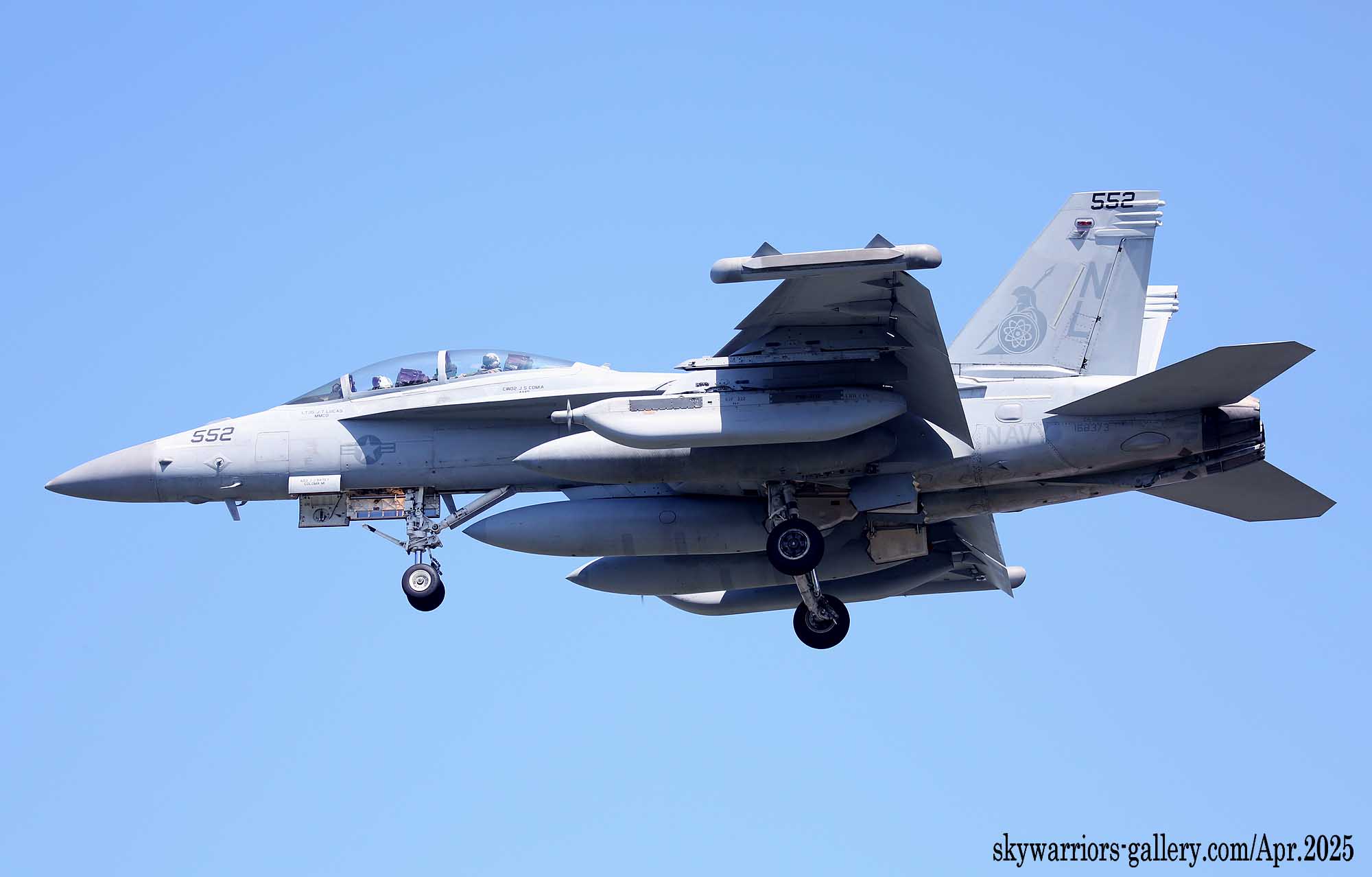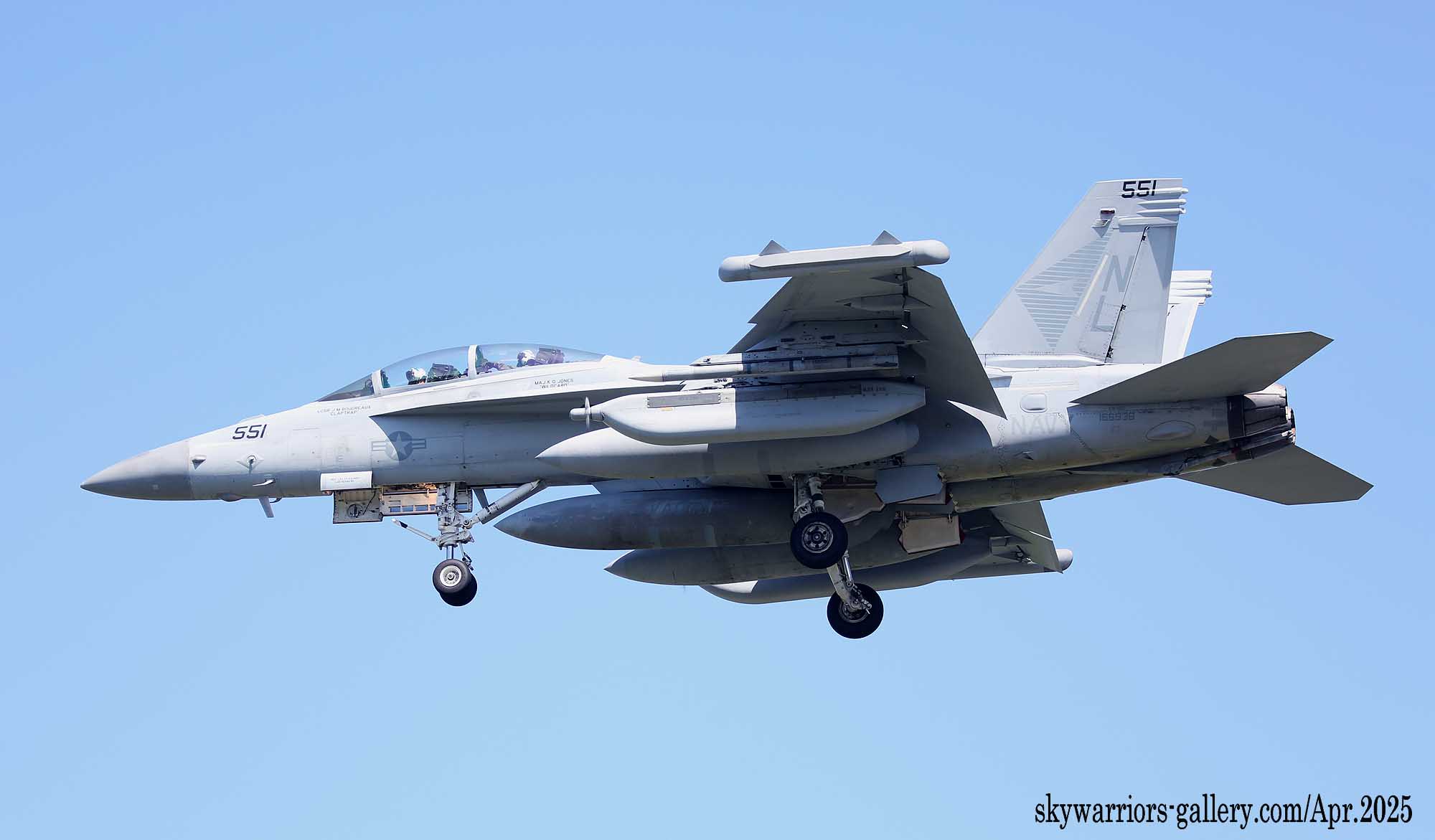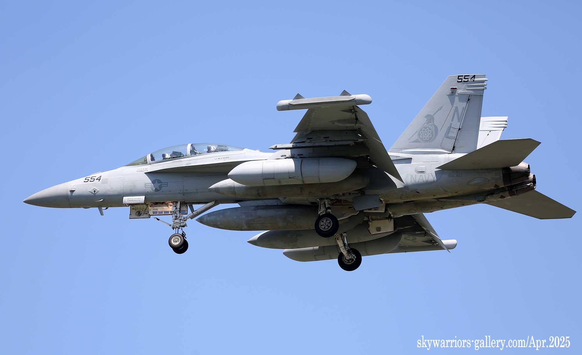 ↑ 新型ジャミングポッドは、全機に行き渡っているわけではなく、NL-554は従来のAN/ALQ-99を懸架して、ハームのキャプティブ弾を付け飛行訓練を行った。