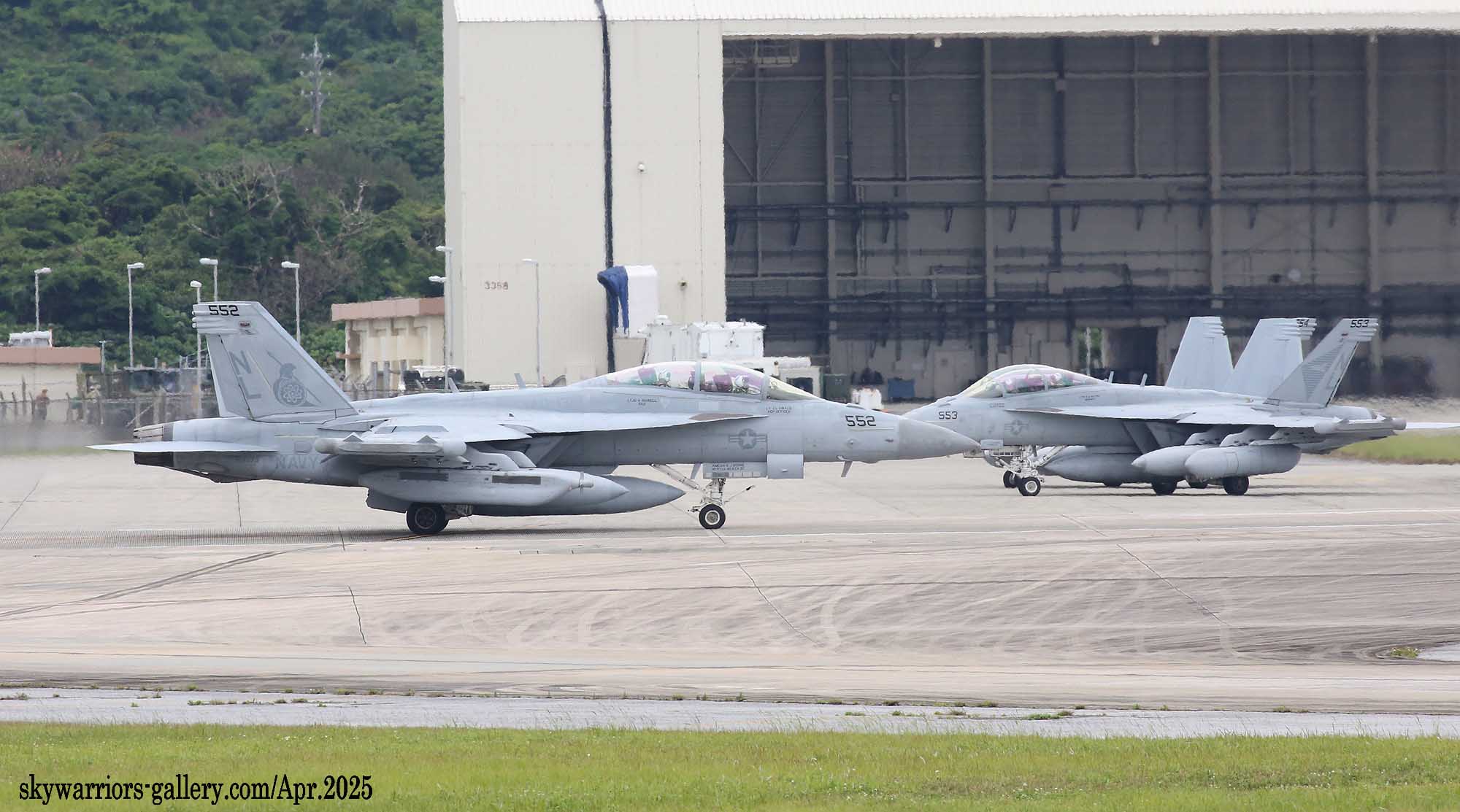 ↑ VAQ-131の3月の訓練ではNL-552/555が新型ポッドを付け、他の機体は従来型で訓練を行っていた。
