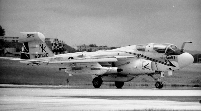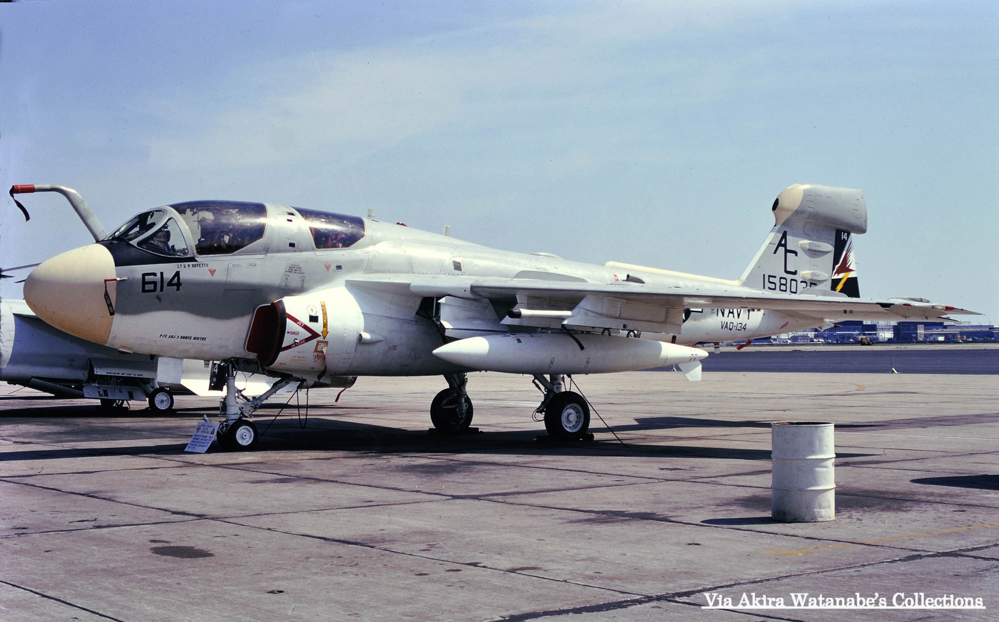 ↑ 1977年9月ノースアイランド海軍航空基地で撮影されたVAQ-134EA-6B/Bu.No.158030。この機体も後の海兵航空へ移管され、VMAQ-4で”RM”のレターを付けて日本にも飛来している。