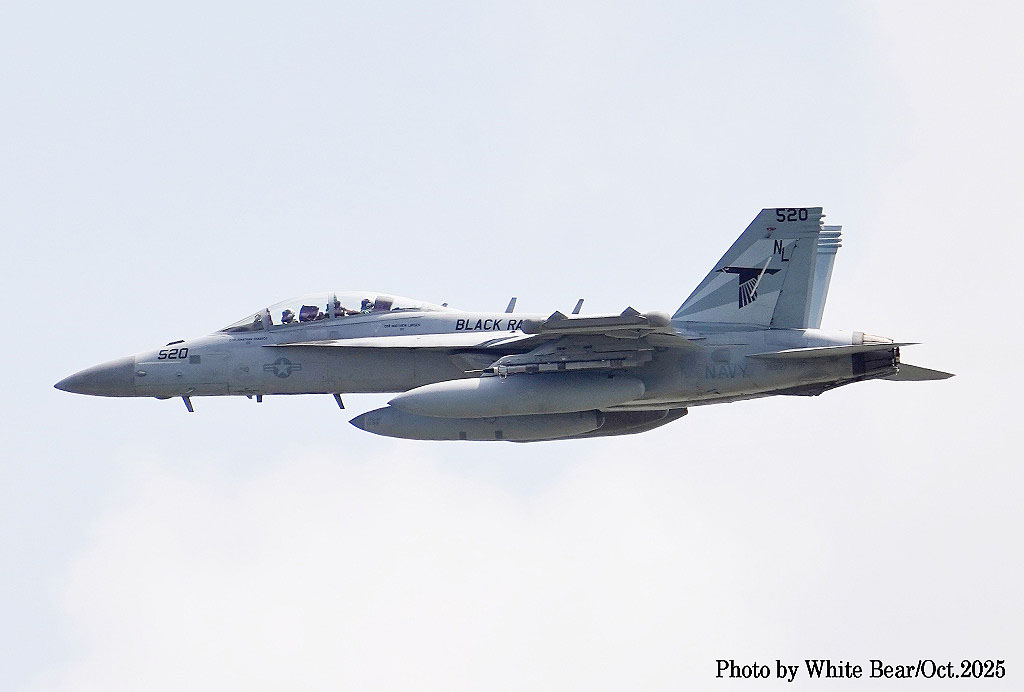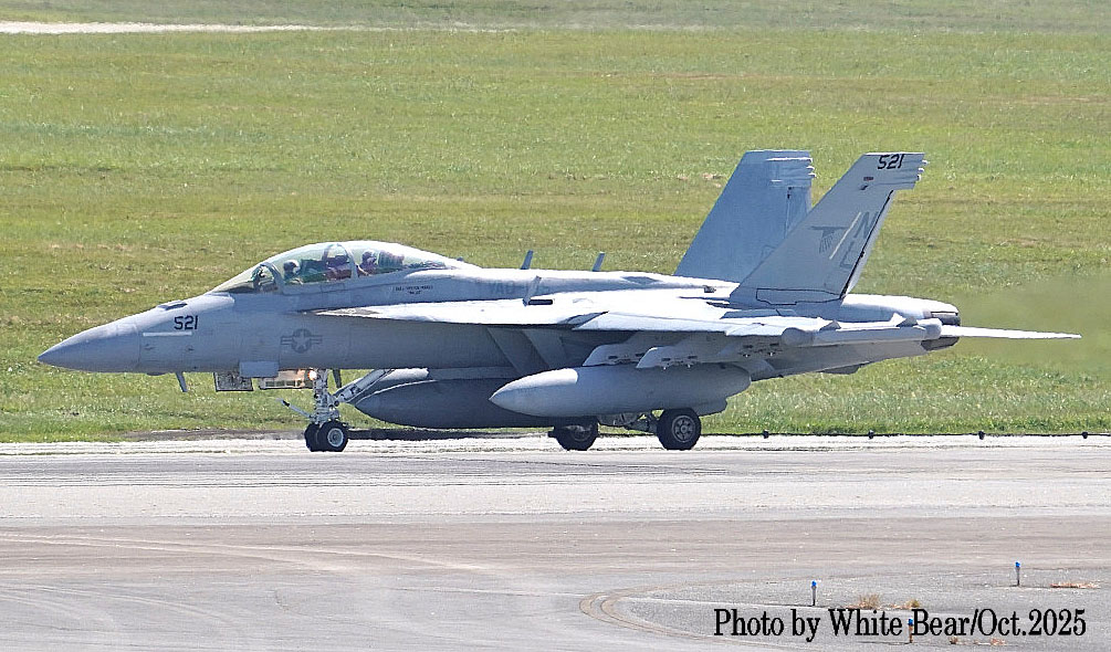 前回VAQ-135の飛来は2023年4月であったが、それから2年半経過した2025年10月再び彼らは日本の地に降り立った。VAQ-209の後任として2025年秋には交代部隊が来ることは予想された事であったが、10月7日まではVAQ-209はまだ嘉手納にいたのである。最近は数日から1週間ほど、嘉手納基地でオーバーラップさせて、任務の引継ぎをするようである。今回、私は彼らの飛来直前に嘉手納を離れたが、White Bearさんが入れ替わりで嘉手納展開されたため、White Bearから送って頂いた到着時の写真から展示させて頂く。(2025年10月 記)