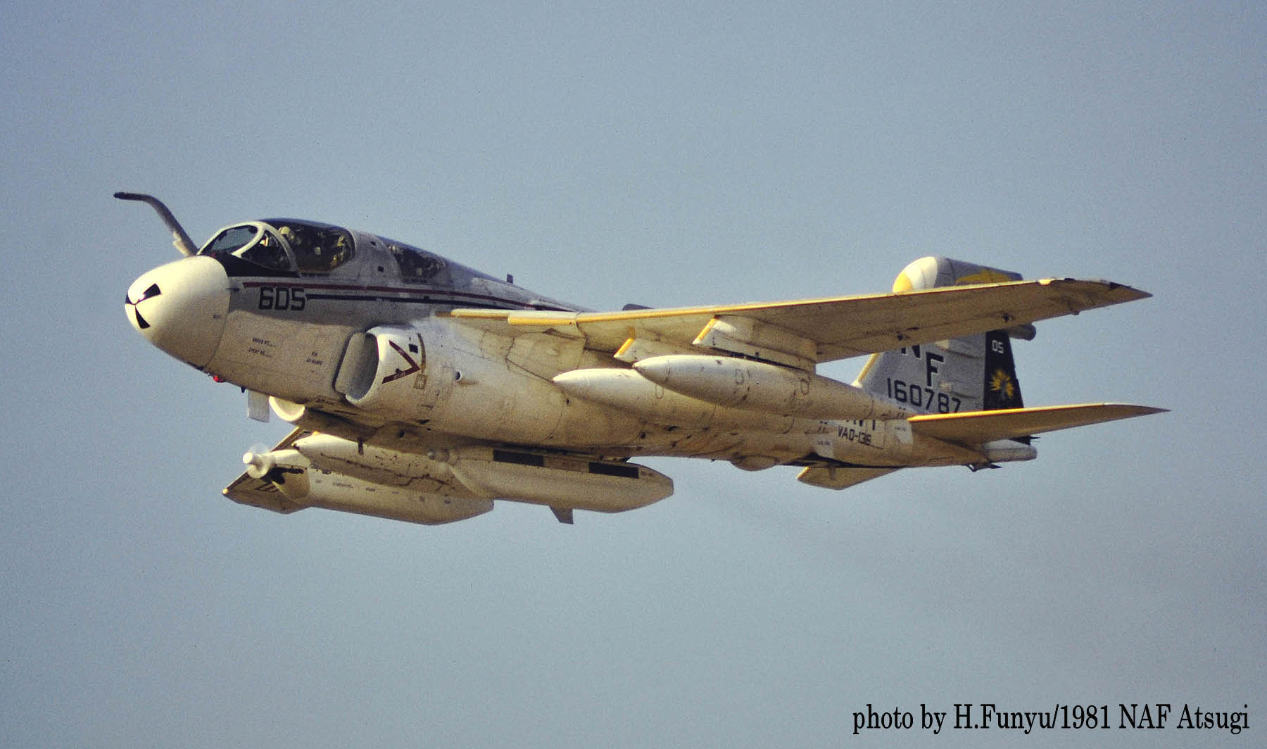 ↑ 1981年厚木基地R/W01を離陸するVAQ-136のEA-6B/NF-605