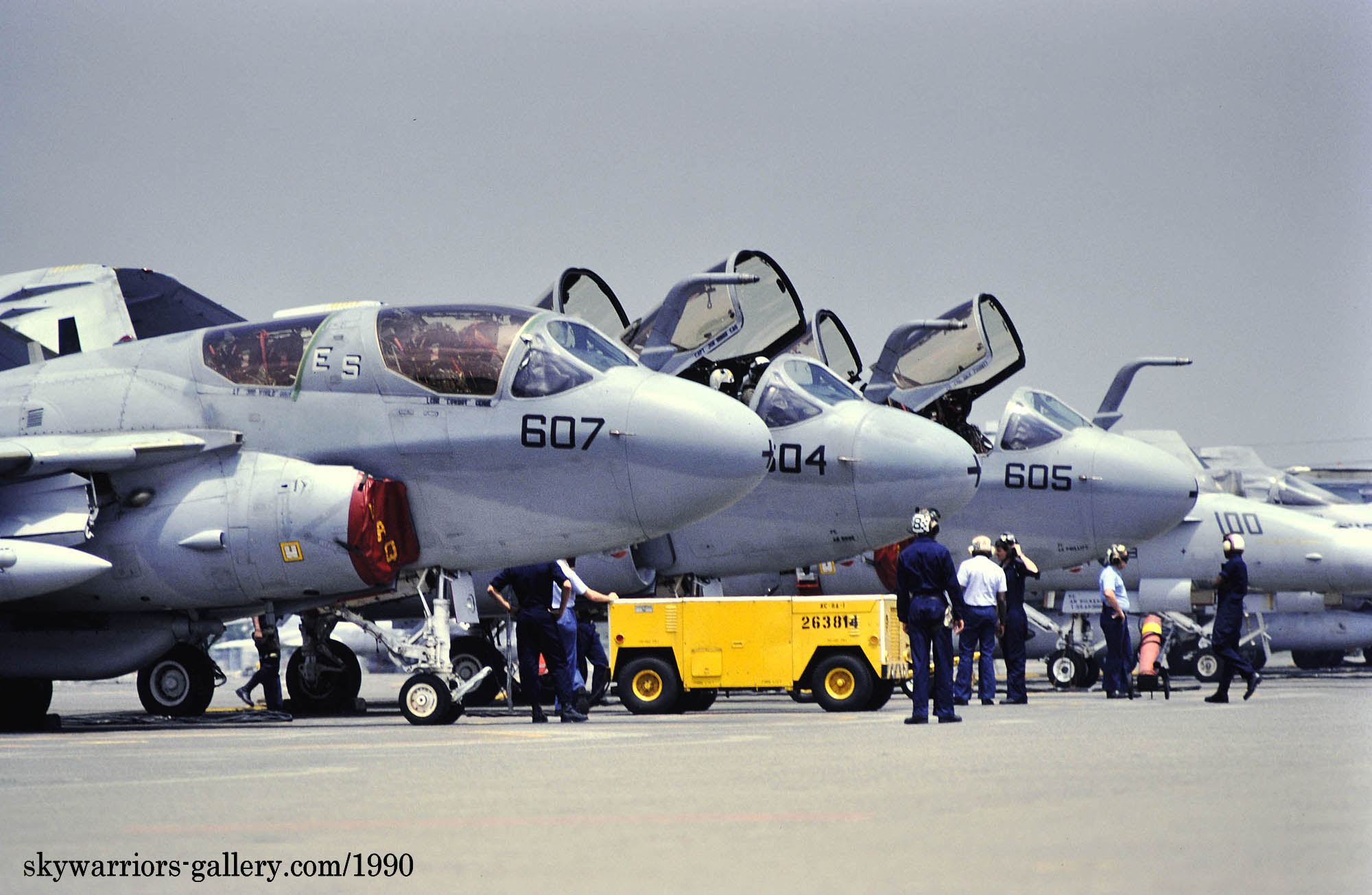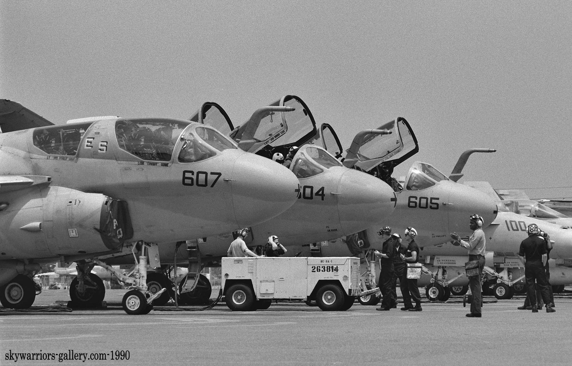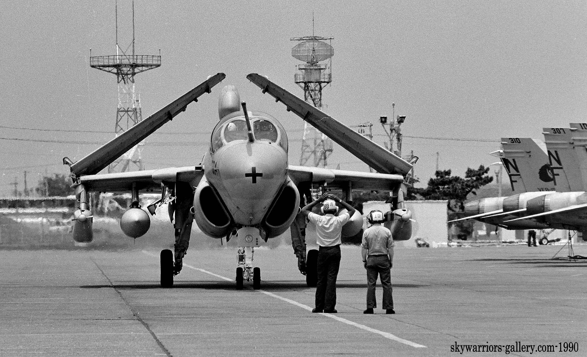 ↑ 昨年に比べ天気に恵まれた1990年の厚木基地航空祭、この日は、3機のプラウラーがエプロンに並び、その動きを一つ一つ捉える事が出来た。整備員達の動きが躍動感を伝える。