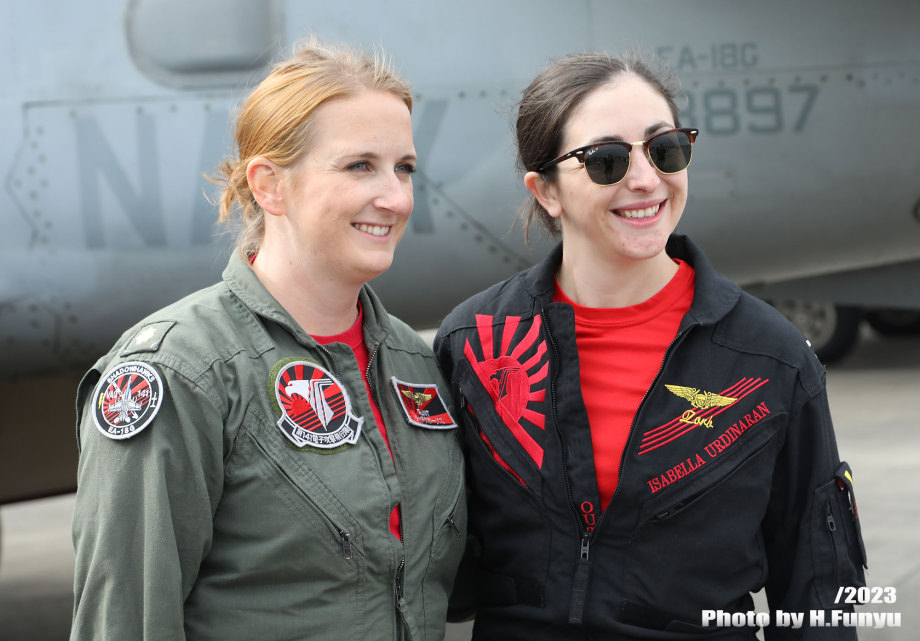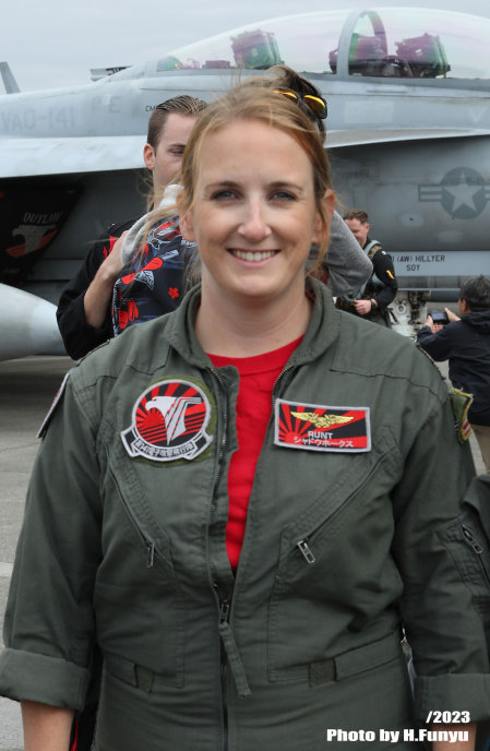 ↑ 上左写真の女性士官は、フニュ君が2023年4月22日厚木さくら祭りで撮影したVAQ-141のXO(副長)だそうである。右写真、3名の士官は岩国基地祭での4月15日のスナップ。