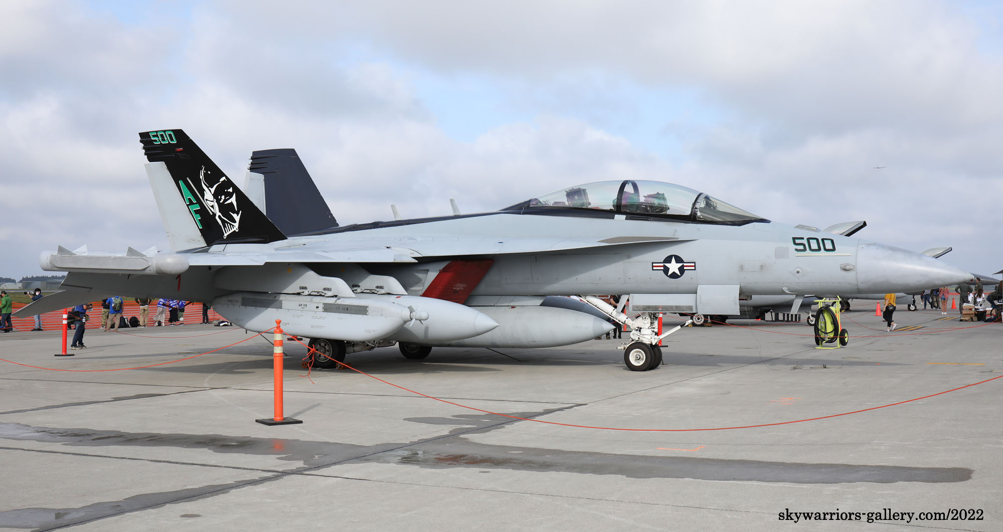 ↑ 2022年9月11日三沢基地に展示されたVAQ-209のEA-18G/Bu.No.166896。春まで三沢にいた前任のVAQ-138のブラックテール機をそのまま塗り替えた機体であるが、2018年に厚木で展示された機体とビューアルナンバーが一つ違いと言うのも面白い。