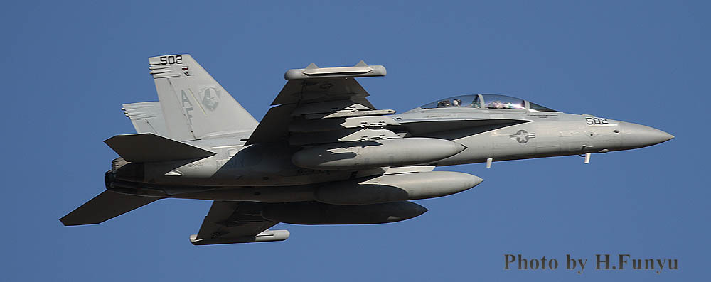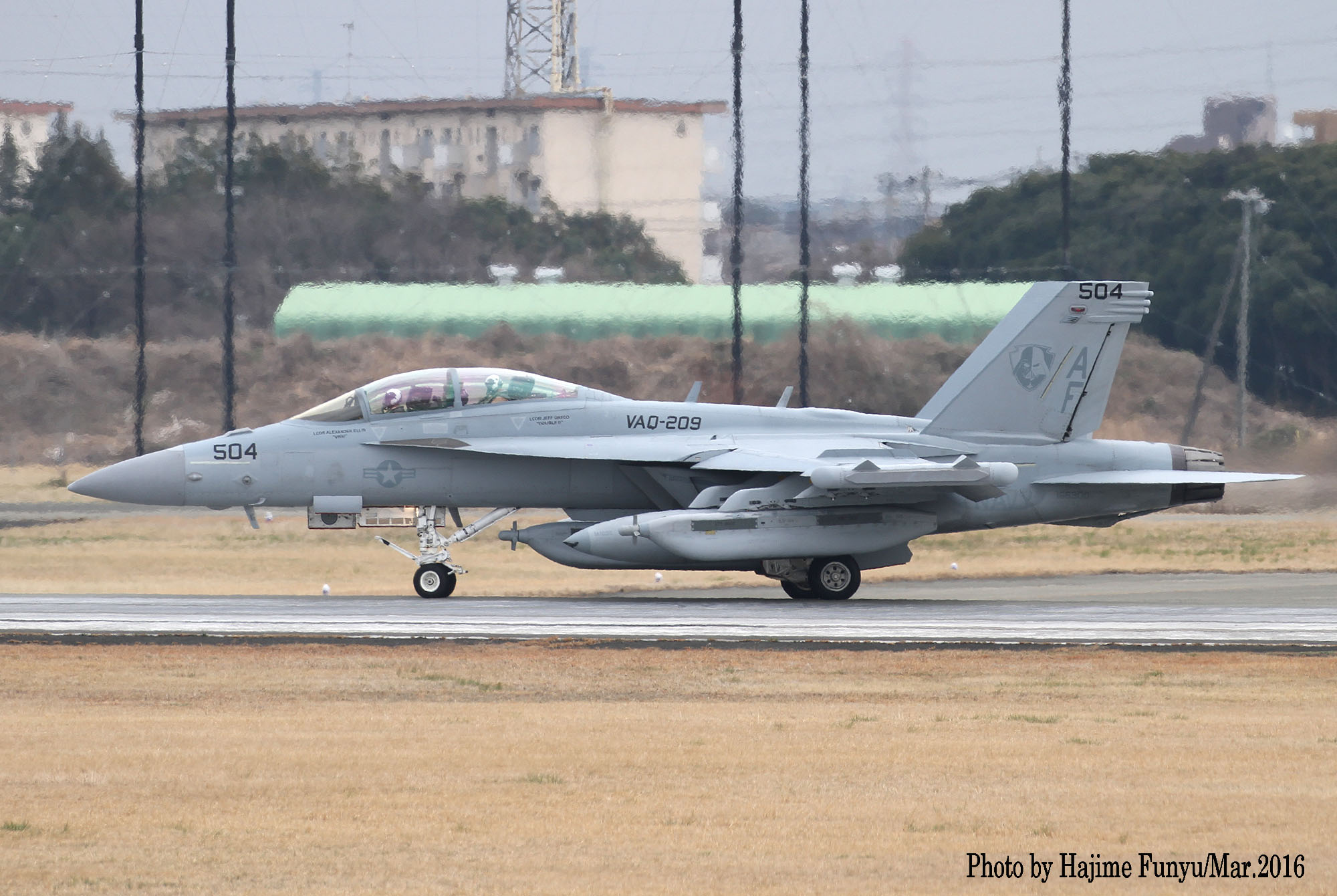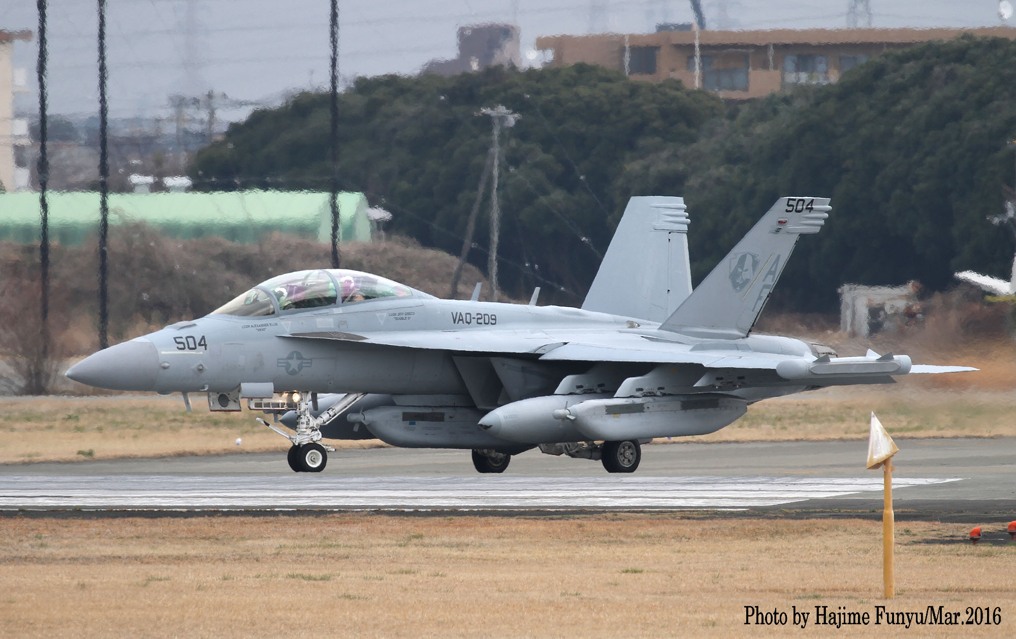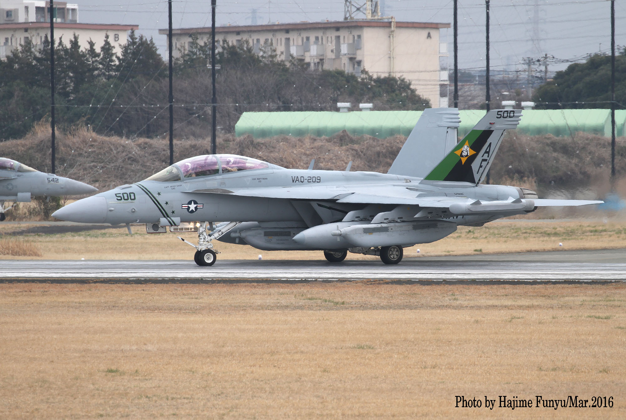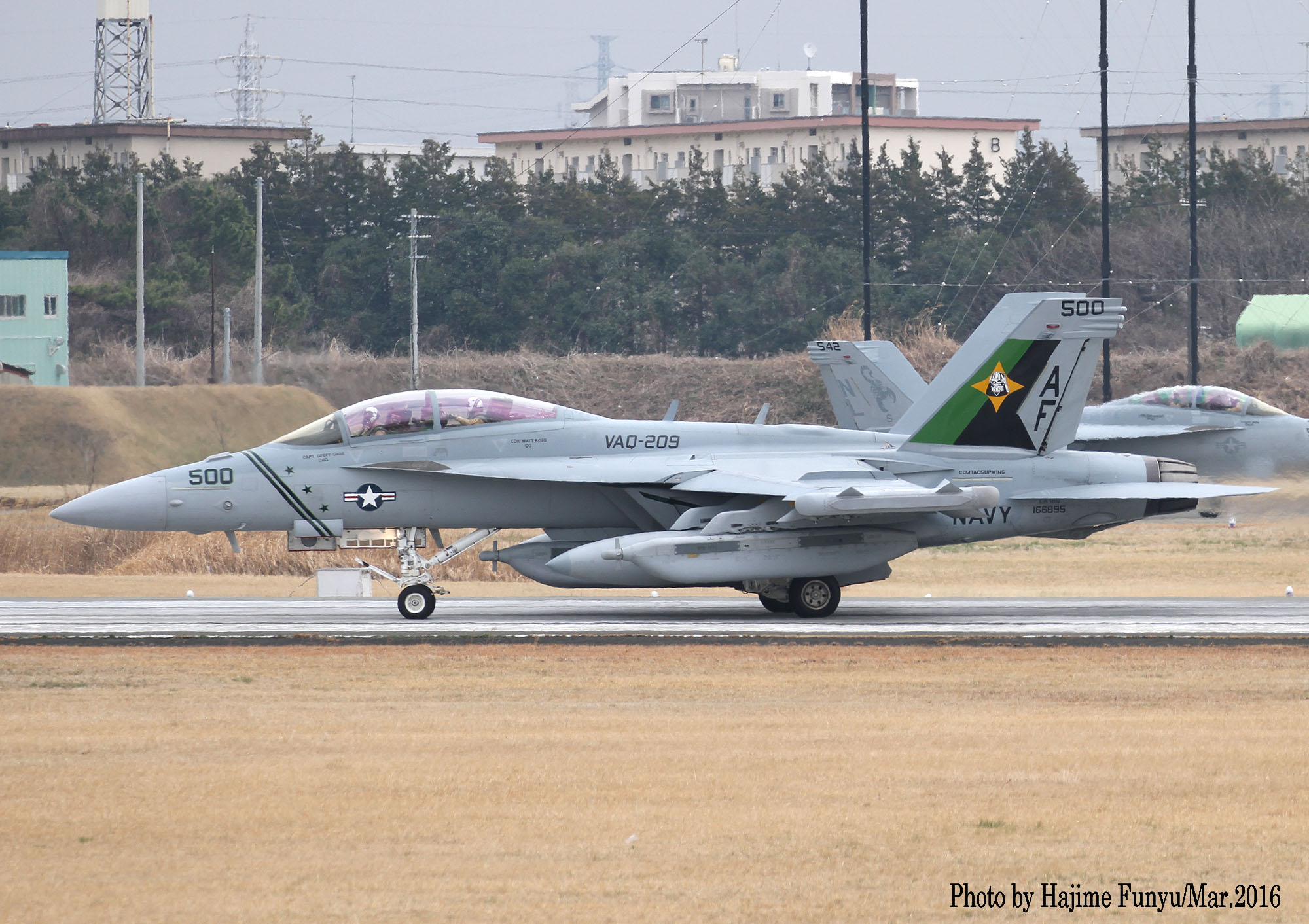 ↑ 2016年3月12日厚木に飛来、その後離陸を捉えたフニュフニュ師匠の写真。この日はVAQ-209のEA-18Gが2機飛来