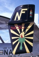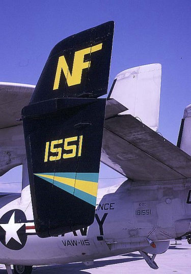 1996年にCVW-5の他の飛行隊と共に黒のテールに変更された。VAW-115に関しては、尾翼のイエローとエメラルドグリーンのストライプ、またはラインをデザイン的に変更するのが常だ。このBu.No.161551も機体交換で、Bu.No.165295に変わった。1998年にストライプの太さに変更を加えるなど若干のマイナーチェンジをしている。1999年から黒黄の旭日旗タイプに変更された。また、コックピット付近のラインも時々書き込まれデザインも変えている。