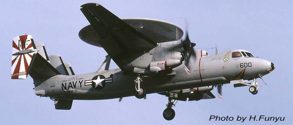 2004年の10月頃からご覧のような旭日旗のような尾翼マーキングとなった。VAW-115もよく機体の入れ替えをするが、このNF-600(165301)も元NF-604である。