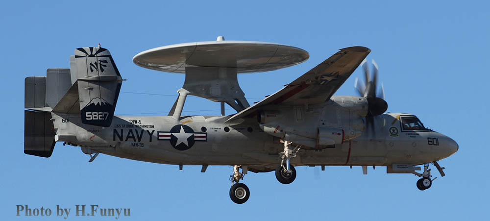 2017年3月17日11:30頃 厚木R/W01で久々に撮影したVAW-115のE-2C。既に2017年2月2日に岩国基地には、後任のVAW-125のE-3Dが5機配備されており、すっかり交代が終わってVAW-115は本国に戻ってしまっているのかと思ったが、まだ厚木で健在であった。私にとっては、最後のVAW-115になるかもしれず、しっかりと撮影しておこう。