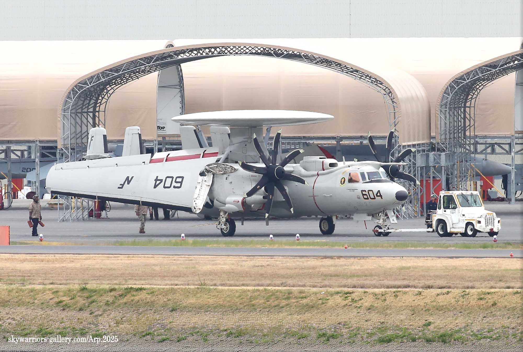 ↑前回撮影できなかったVAW-125の604号機。今回は601号機と共にエンジンテスト等実施後、短時間の飛行テストも行われた。2025年4月
