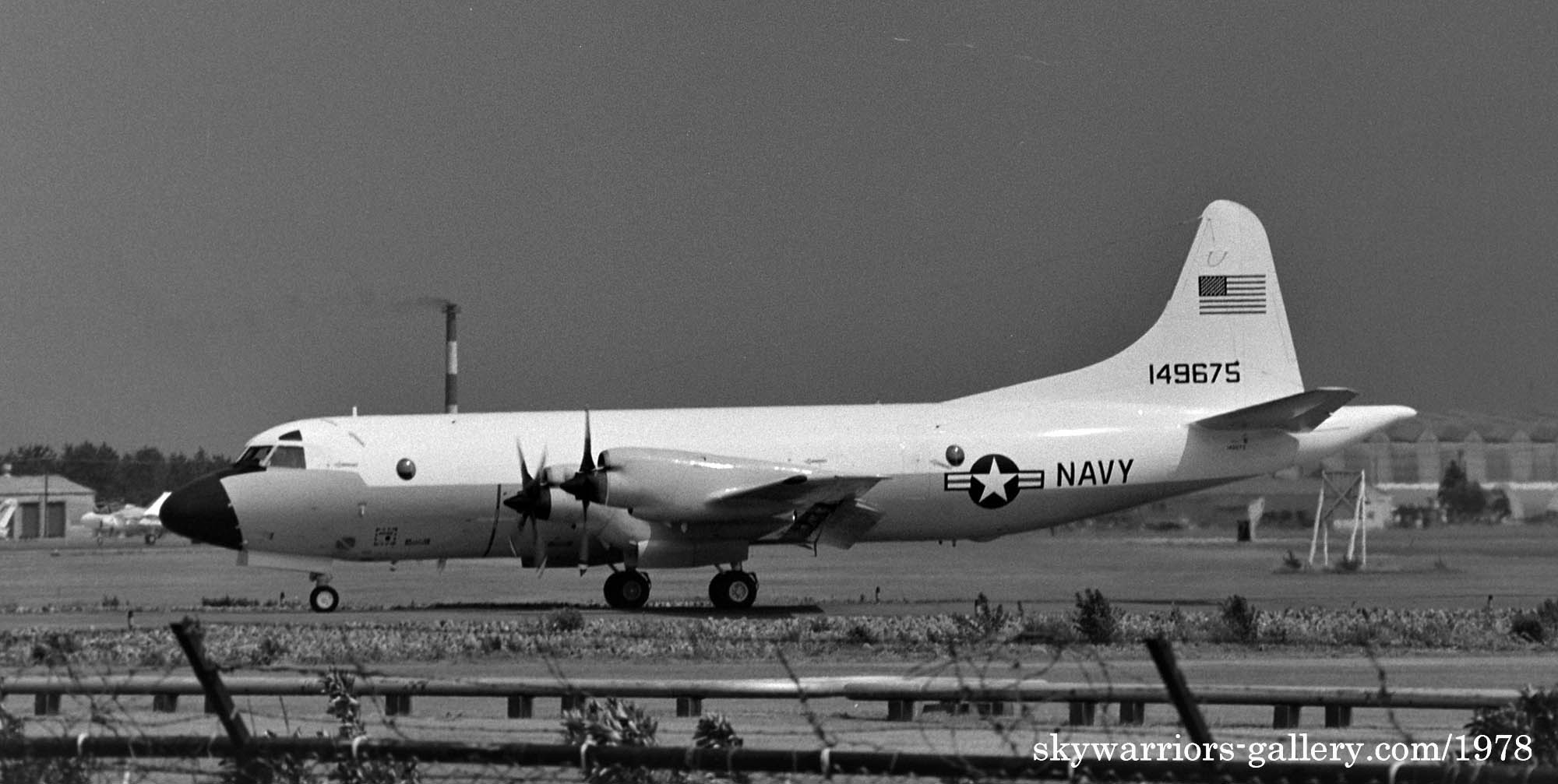 ↑ 1978年 厚木基地を飛び立つためタキシーするVC-1 VRdetのVP-3A/Bu.No.149675。この機体は1984年頃 機首上面にアンテナ類が増設されるなど改造が施された。1986年には当時の海軍太平洋司令官ジェームズ・レイヨンズJr