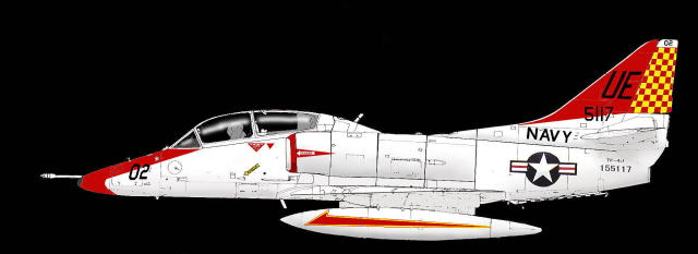 厚木基地に写真撮影で通い始めた頃、この部隊のTA-4Jが撮れれば、その日は他に何も撮れなくても満足して家路に家路に着く事が出来た。それほど私にとっては貴重な存在だったVC-5だが、それは機体を彩る赤黄のチェッカー模様が実に美しかったからである。これらの機体をもっと撮りたいと嘉手納基地まで遠征した(もちろん、VC-5だけが目的ではなかったが大きな目的の1つではあった)。”VC”とは艦隊飛行隊のことを差し、部隊の主な任務は艦船と航空機に対する射撃訓練の支援である。その為、標的を曳航することは彼らの任務の一つであり、味方からの誤射を避けるために尾翼に目立つ赤黄のチェッカーを描いた。この美しい機体がマニアにとっては、格好の被写体であったのだ。私は撮った事がないが、機体を純白に塗りこめたTA-4J(UE-01/155115)などは写真を見るだけでしびれた。その後この部隊はマーキングを度々変更するが、最後は標的曳航の任務から解放されたのか、お定まりのロービジとなった。
