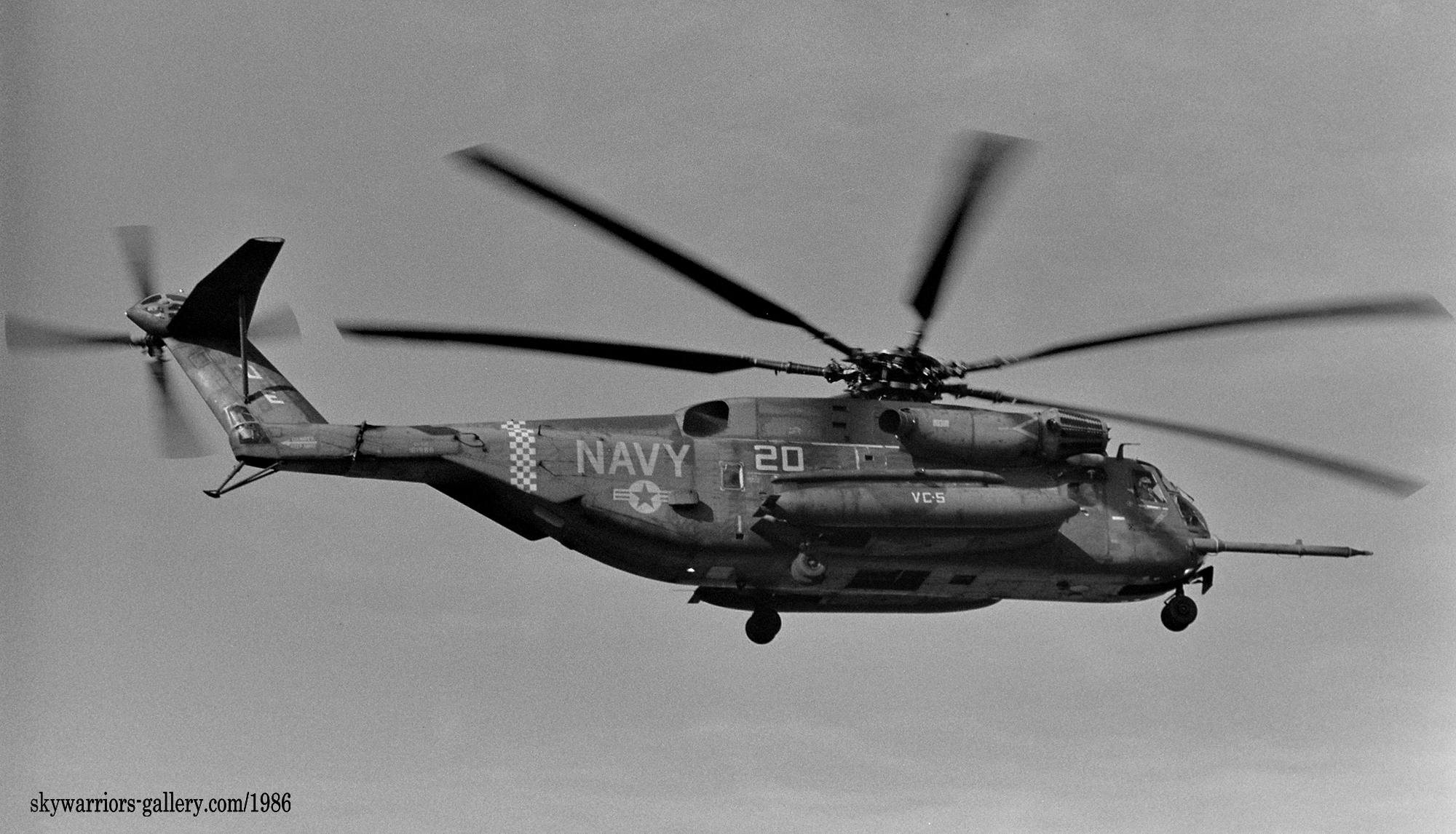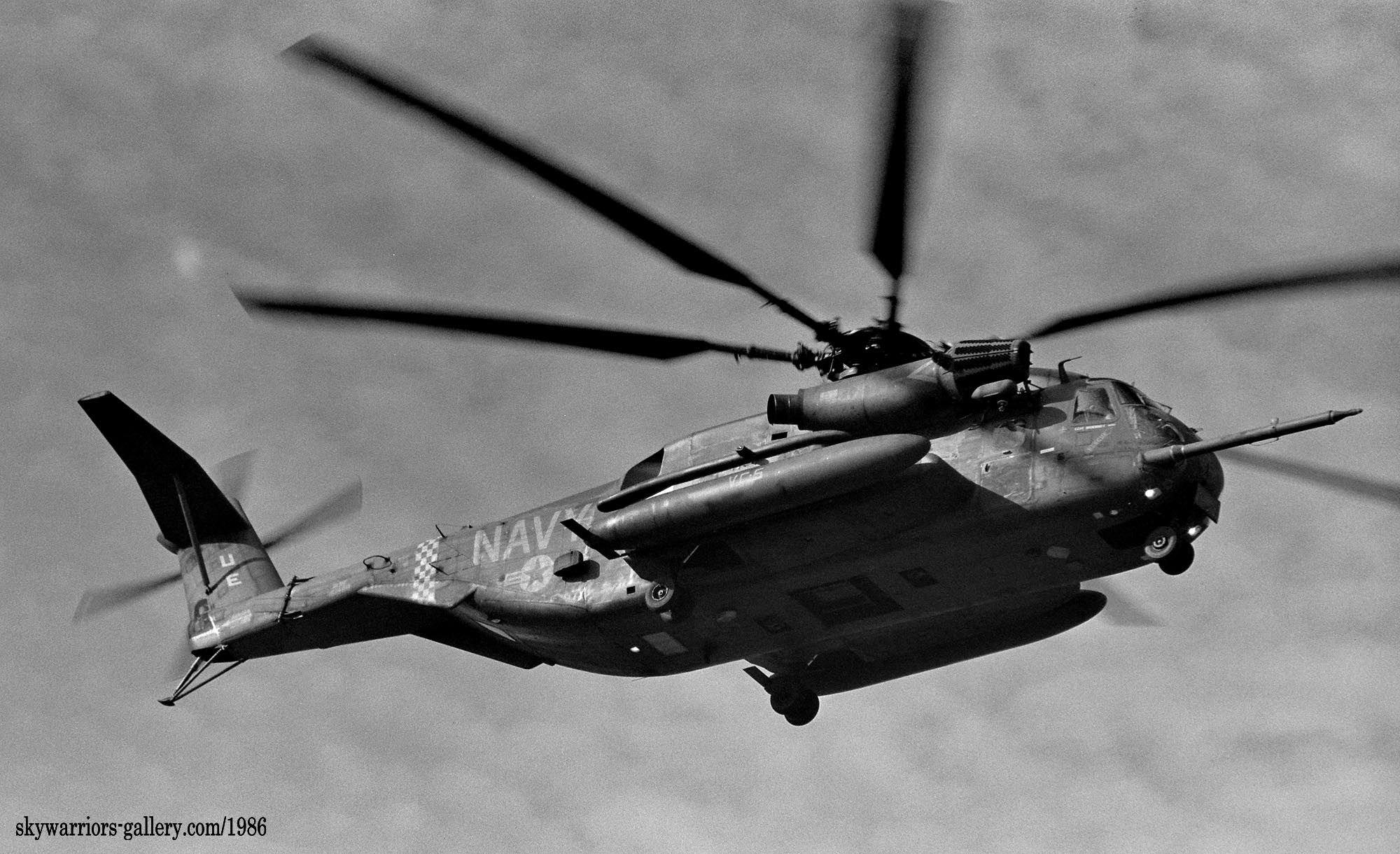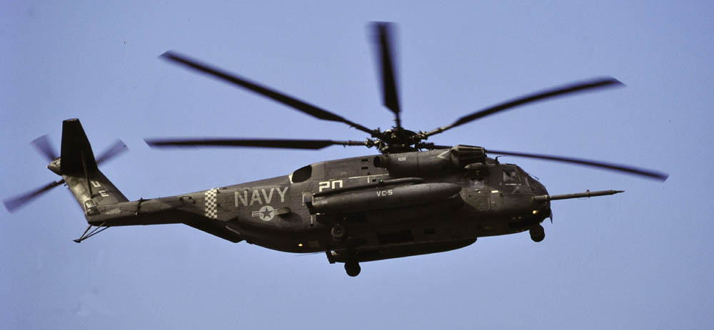 ↑ 1986年秋 厚木基地のR/W01に着陸するVC-5所属のCH-53E / Bu.No.161988 /UE-20