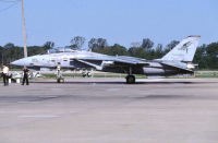 ↑ 1994年アリゾナ州ルーク空軍基地で撮影されたF-14のB型。Modex101に部隊番号が重なることからショーバードに指定された機体で、従来より大きく死神が描かれ各所に赤色で文字が入っている。部隊名は主翼の前縁に入っていた。F-14B /Bu.No.163226
