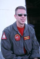 彼らのシンボルマークは、”Grim-Reapers”死神だ!航空兵のバイザーをつけた骸骨が勢いよくダイブして大鋸まで”死”をもたらすモチーフは、”素早い火力の指向”を表現したものだそうだ。VF-101のF-14には、このスケルトン(骸骨君)の死神が尾翼いっぱいに書き込まれている。1997年だったと思うが、コマンダー機の尾翼と機首上面をスコードロンカラーの真っ赤に塗ったF-14が登場し注目された。このマーキングは直ぐ消されたが、まだオシアナ基地の旧PAOオフィスには10分の1ぐらいのこの塗装をしたF-14のソリッド・モデルが飾ってあった。こうしたスペシャル・マーキングには中々お目にかからなかったが、2002年にブラックテールが何と2機も登場しトムキャットファンを喜ばせた。