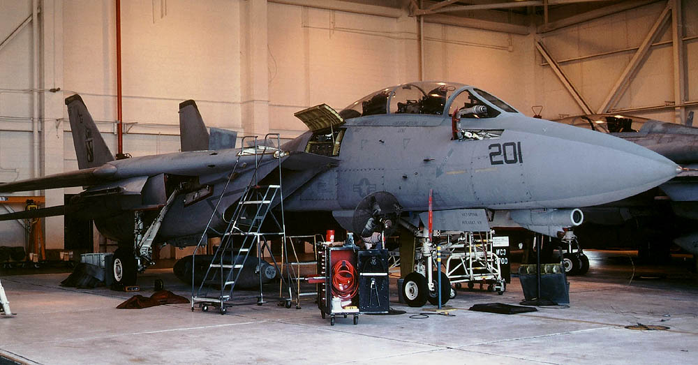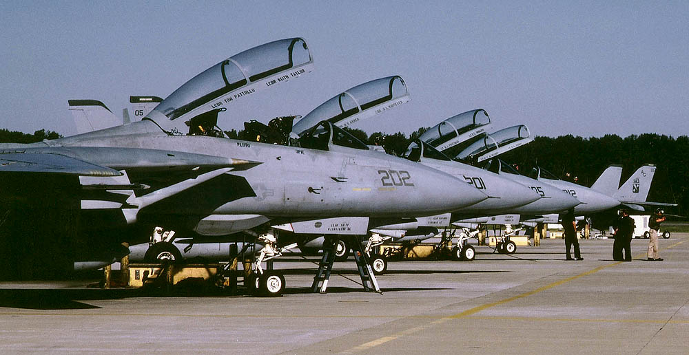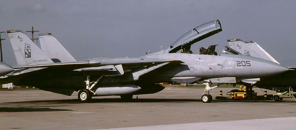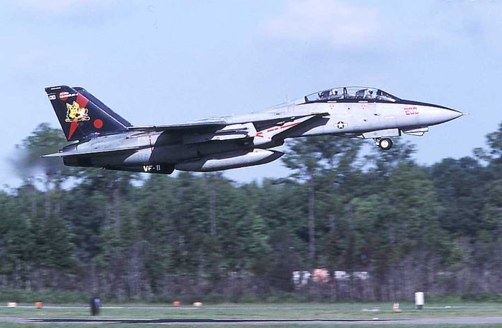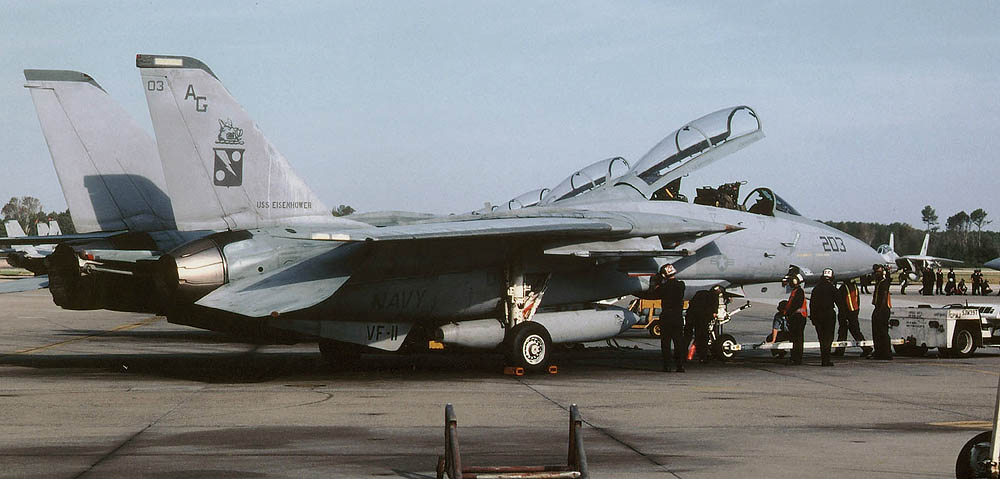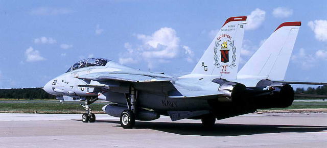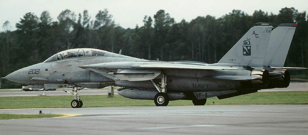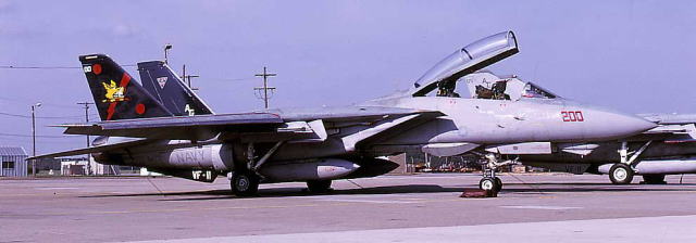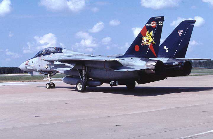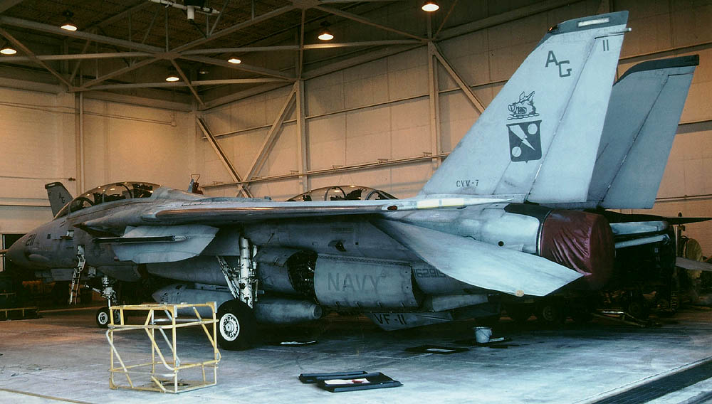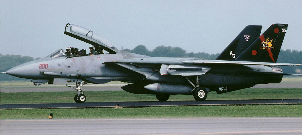 アメリカ海軍は、RF-8G/RA-5Cの引退に伴い、F-14装備の飛行隊に偵察能力を持たせる為TARPS構想を生み出した。偵察ポットの搭載能力を持ったF-14の運用である。VF-11はアメリカ海軍F-14飛行隊の中で、最初にTARPS運用能力を得たF-14が配備された飛行隊であった。下は2000年に現れたVF-11のブラックテール。(AG-200)