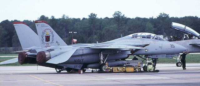 第二次大戦終戦後の1950年に創設された部隊でF-4ファントムからF-14への機種転換は意外に遅く、1980年になってからである。ベトナムへの参戦時期を除き大西洋方面で任務に着くことが永かった為、我々日本の航空ファンはあまり目にする事が無かった。1994年F-14Dに機種交換し、4年程CVW-14(NK)の傘下に入り、1994年3月にVF-31と共にUSSカールビンソンに搭載されて横須賀に寄港した事がある。そのお蔭で大西洋方面での行動が多かったこの部隊のF14についても、一部のマニアは撮影の機会を得ることが出来た。