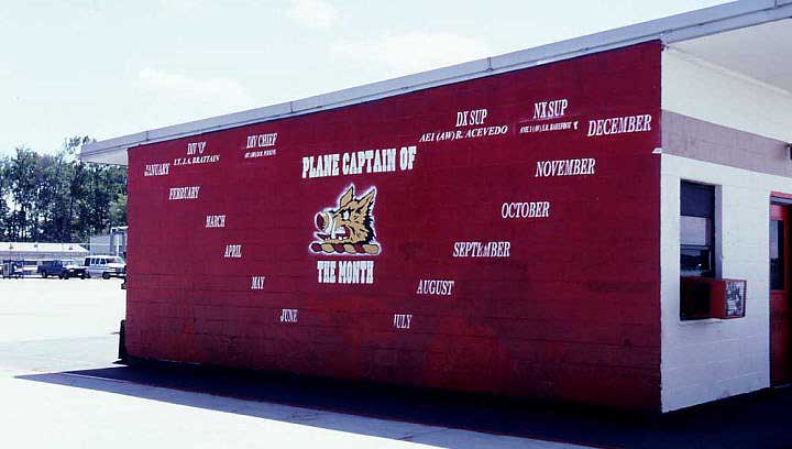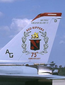 "MUTHA GRAND SLAM"と尾翼にあるのは、この部隊が栄誉ある"MUTHA"(最高の海軍戦闘機ヤローの賞)を3度受賞したことを記念したのものである。因みに1992,1994年と2002年が"MUTHA"獲得の年である。ご存知の通り"MUTHA"は、公式な賞ではないが、これを受賞したF-14スコードロンは、必ずと言って良い程、自慢げに尾翼にこの文字を入れる。