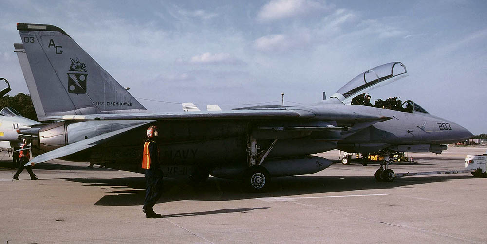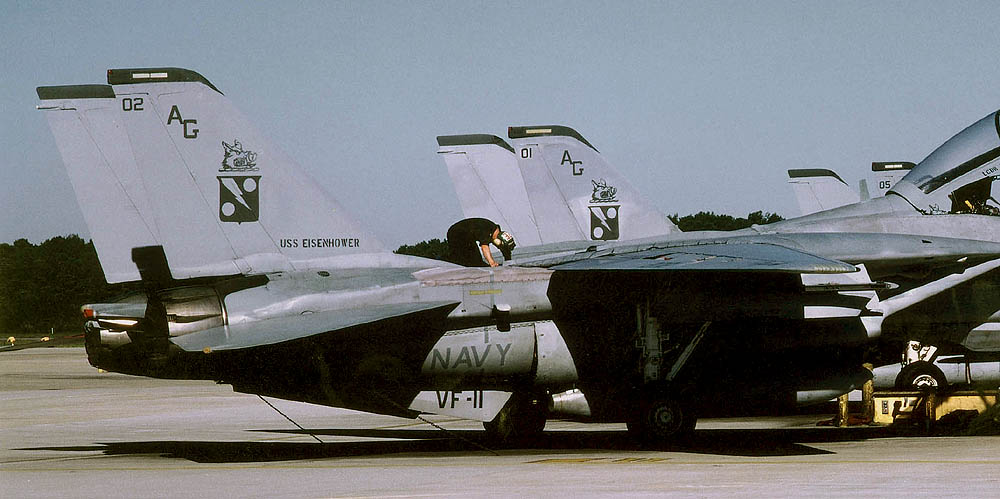 1999年10月 VF-11の載っていた空母は、ニミッツ級2番艦USSアイゼンハワー。1998年12月に6か月のパトロールからノーフォークに戻っているので、1999年は比較的平穏な年だったはずである。しかし、8月にCOMPTUEXその後JTFEXなどの激しい洋上訓練を消化している。
