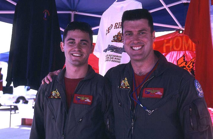 VF-11のブースにて ポーズを取ってもらったお二人のパイロット。Goodsがいっぱい !!