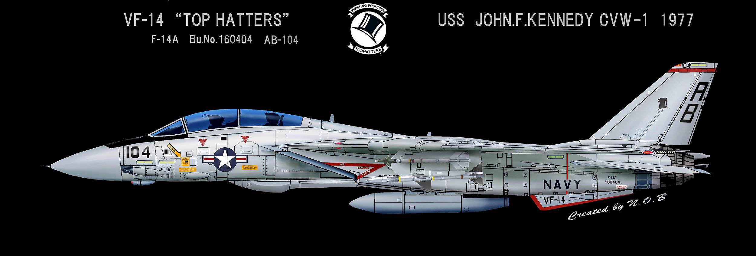 VF-14は、1919年7月アメリカ西海岸のサンディエゴで創設された。海軍最初の航空隊と言うことからVF-1と命名された時期もあったが、様々な改編を経て1949年現在のVF-14となっている。トップハットのマークは1927年に制定された伝統あるもので、確かカーチスホークなど初期の戦闘機にも書き込まれていたはずだ。