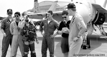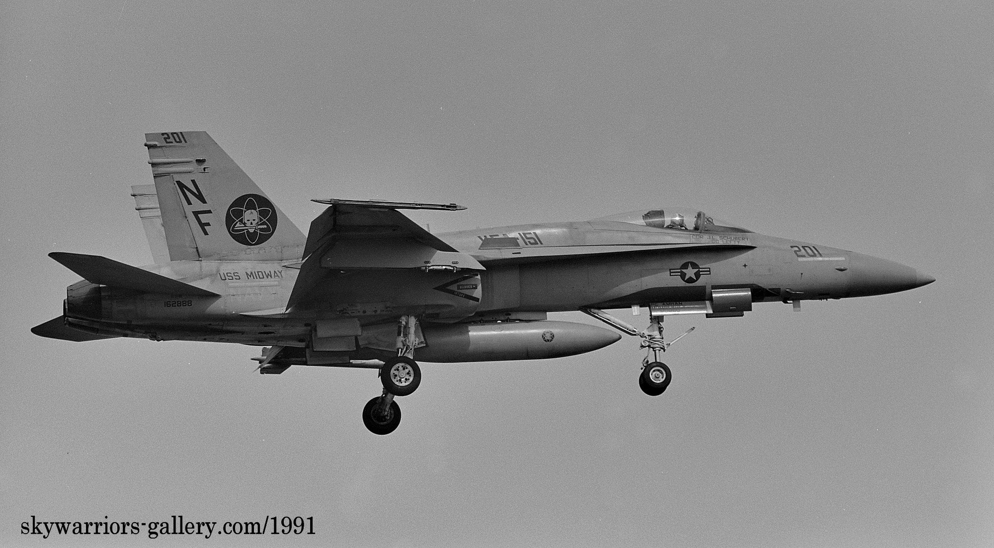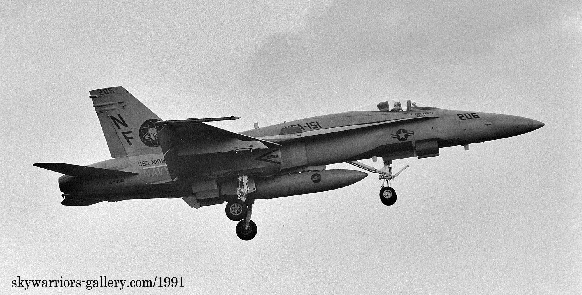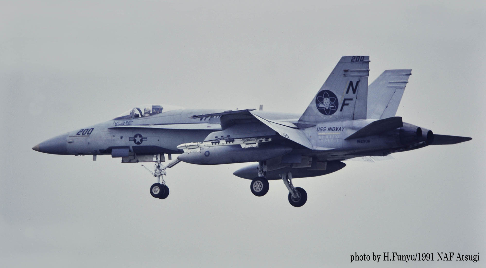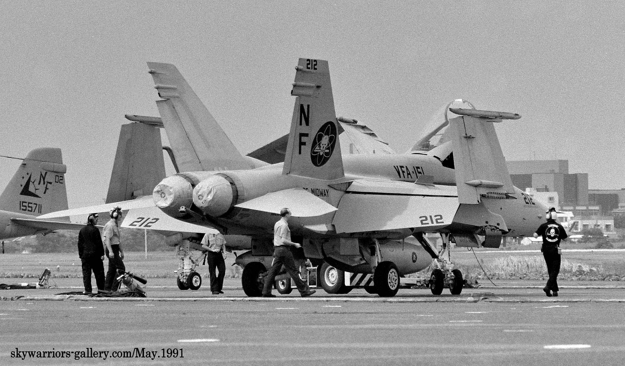 ↑ こうした光景が見れれば、各機のビューアルナンバーが掌握しやすい。NF-200番(Bu.No.162906)もまだ僚機と同じロービジ塗装である。"NAVY"と空母の艦名だけが、ライトグレーで薄く書かれているのが、この年の特徴。