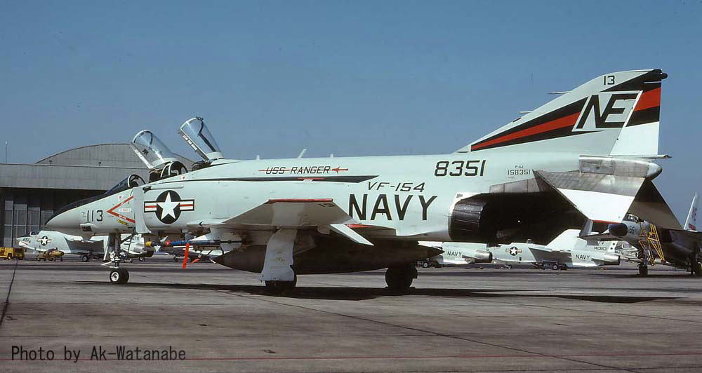 アメリカ海軍第154戦闘機中隊(VF-154)は、F-14Aの時代に永く厚木に展開してすっかり馴染みの飛行隊になったが、F-4時代にはあまり日本に飛来することはなく、空母の横須賀寄港や日本周辺海域での搭載空母からの飛来などで記録が残っている程度である。1946年7月に創設された飛行隊で、朝鮮戦争時代にジェット戦闘機に更新しF9F-2パンサーで戦い、帰国後VF-154という今の部隊番号が与えられた。