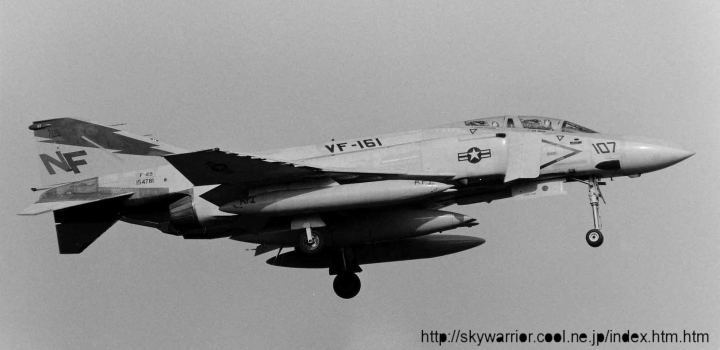 ↑ CVW-5のベースであった厚木基地で飛行訓練を行っていたVF-161のF-4J。機体左側面の写真はR/W01の午後、右面の写真はR/W19の午後の着陸で、共に2時過ぎ位から光線状態が良くなっていく。
