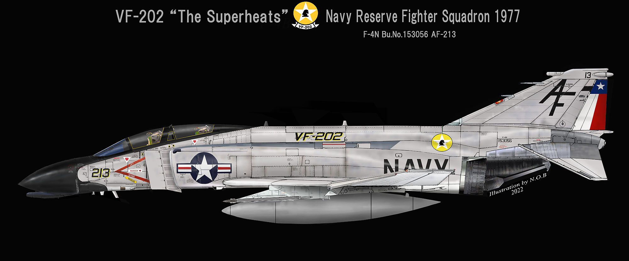 彼らの部隊名は、”Superheats"「 過熱」である。F-4Nは、エンジンも含め機体の外形は、ベトナム戦で活躍したF-4B型と変わらない。電子機器が入れ替わっており、予備役部隊はこれを長く使いJ型には移行せずに海軍ファントム最終型となったS型に転換した。VF-202は戦闘機中隊として、米海軍で最後までF-4ファントムを使った飛行隊である。最後