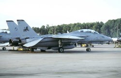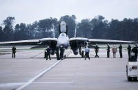 2002年オシアナで見た彼らは、尾翼に”AJ”のレターを入れていた。VF-211が、永らく所属した太平洋艦隊のCVW-9からCVW-1に変わったのと同時に、VF-213も大西洋方面のCVW-8に行ってしまった。その代わり太平洋方面はVF-102がVFA-102に部隊名を変更してCVW-5に来たのである。2003年1月から”AJ”のレターを付けた彼らは早速USSセオドア・ルーズベルトに艦載されイラク・フリーダム作戦への参加を行っている。オシアナに帰還したのは5月28日。機首にはそれぞれ出撃マークが書かれていた。