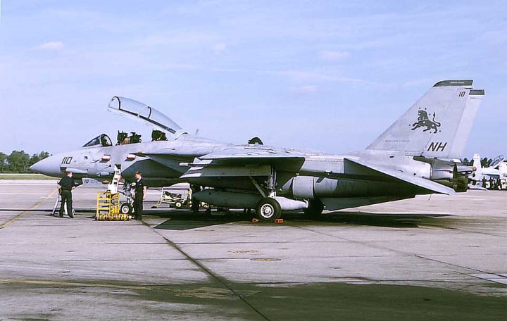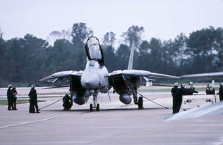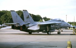 2003年のオシアナ航空ショーはエクソンなど大手スポンサーが手を引いたことにより、ネプチューン・フェスティバル2003ではなく海軍主体の航空祭となった。F-14の影もすっかり薄くなったオシアナであるが、F-14の展示機は久々に色つきのCO機である。とは言っても VF-213のCO機は、濃紺の獅子座が描いてある事とコックピットのラインが同系色で塗られている実にシンプルなものだ。