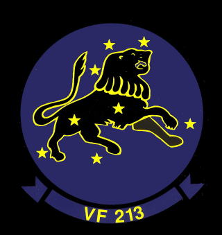 1955年6月22日にNASモフェットフィールドで編成された部隊で、最初からF2H-3バンシーといったジェット戦闘機の配備を貰った比較的新しい飛行隊である。F-4を受け取ったのが1963年、他の飛行隊がF-4B型であるのに、VF-213だけは当時では画期的な母艦や空中警戒機とのデータリンク機能を持ったF-4G型が配備された。その後CVW-11(NH)に配属となり、一時的にB型にバージョンダウンしたがF-4Jを1969年に受領し、1966年からベトナム戦に参加、1972年の秋まで5回以上空母遠征して戦っている。特筆すべきは、1972年のラインバッカ−作戦への参加であろう。過去最大の北爆となったこの作戦は、アメリカが北ベトナムとのそれ迄の交渉で中々停戦が実現しない為、一挙に交渉を前進させる為のカンフル剤のような効果を狙って行われた。B-52は首都ハノイ、ハイフォン港などにはじめて爆撃を敢行し、北ベトナム政府に「アメリカは、ベトナムを石器時代に戻そうとしている」と言わしめたほど激しい爆撃には、キティホーク、ハンコック、サラトガ、オリスカニ、ミッドウェー、アメリカなど6隻の空母が参加 CVW-11の攻撃隊ははじめて”ウォールアイ”誘導爆弾を使って精密なピンポイント爆撃を行っている。これがVF-213のベトナムでの最後の仕事になった。1975年暮からミラマーで新型戦闘機F-14Aへの転換訓練が開始され、1976年に完了している。