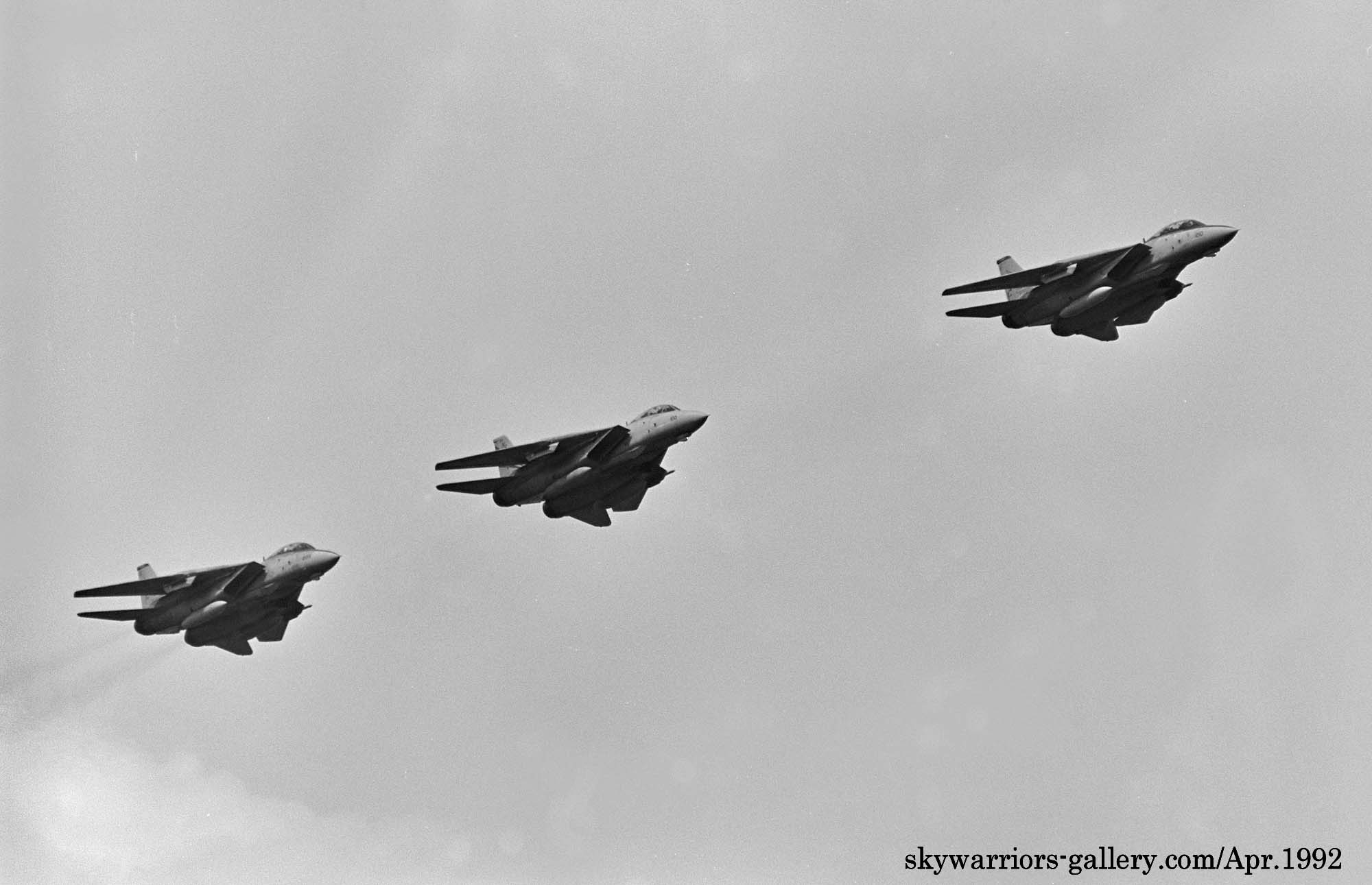 ↑ 1992年4月厚木基地の航空祭"Wing-92"でデモフライトした最初のF-14A 3機の内、2機はVF-21所属だった。