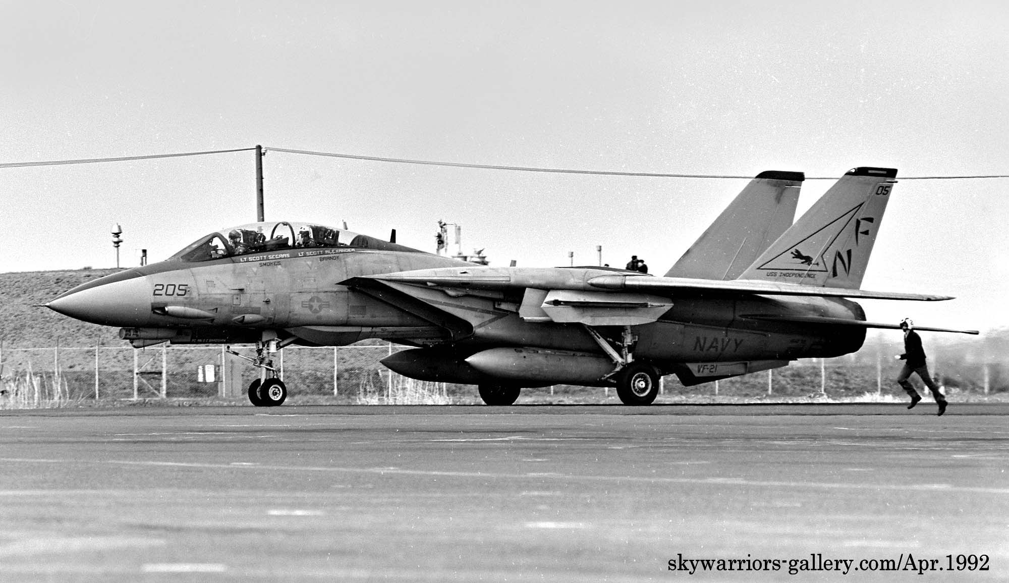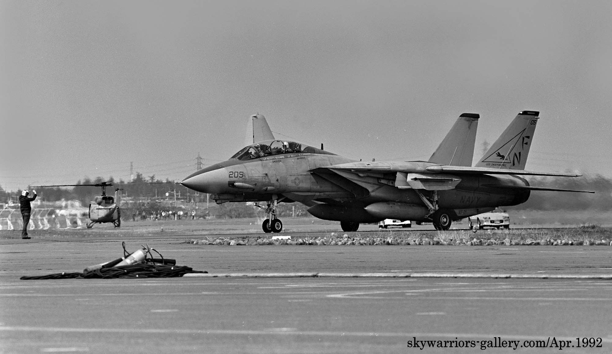 横須賀港を母港とする空母ミッドウェイが、老朽化と改装の失敗により予定より早く引退することが決まり、厚木の海軍マニア達の話題は、次に来る空母インディペンデェンスに載る空母艦載機の部隊、特に100番台200番台にF-14Aトムキャットの部隊が宛がわれることから、この2飛行隊がどのスコードロンになるかが、一番の関心事であった。既に専門家はVF-21とVF-154が来ることを予想していたが、この2飛行隊は、1987年にも空母コンステレーションから厚木基地の航空祭に参加しており、予兆はあったのかもしれない。私にとっては、マーキングの美しいVF-21は来日を期待する筆頭にあったので、1991年秋から厚木に配備された部隊を1992年春先から追っかける事になる。