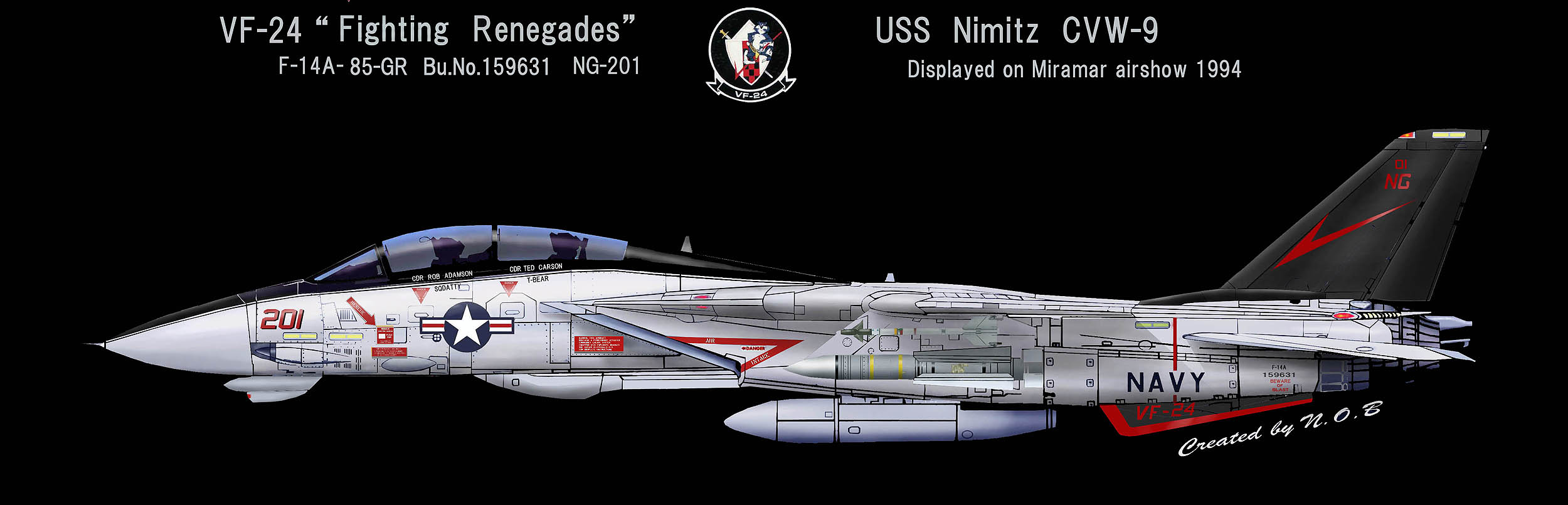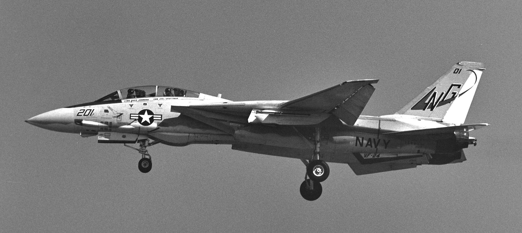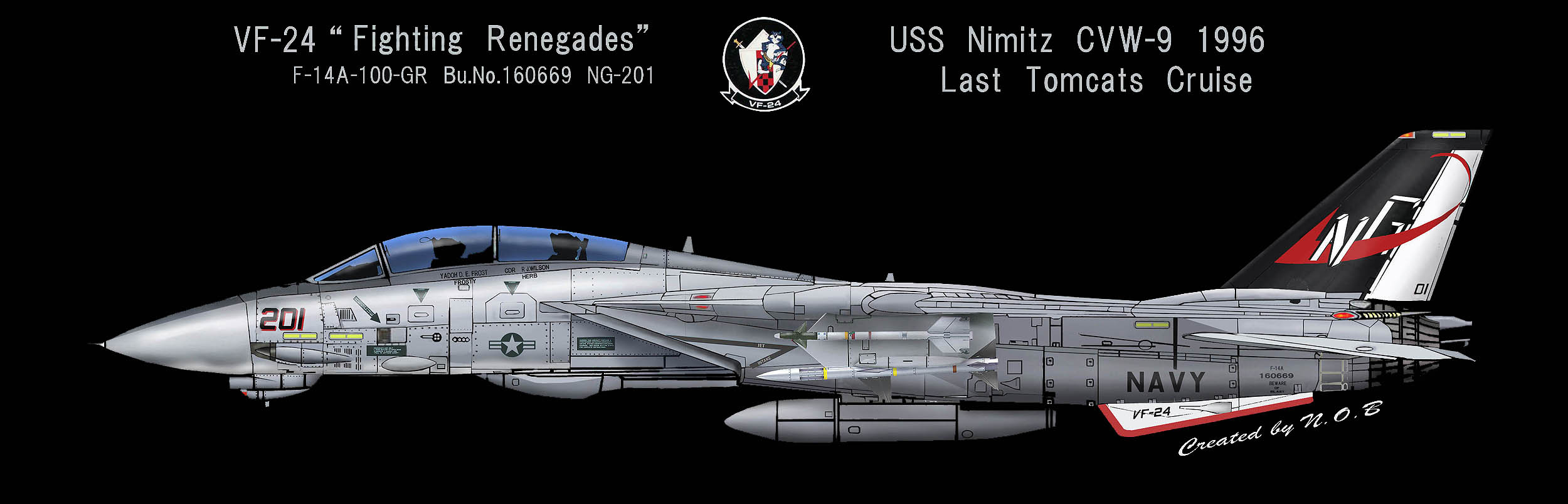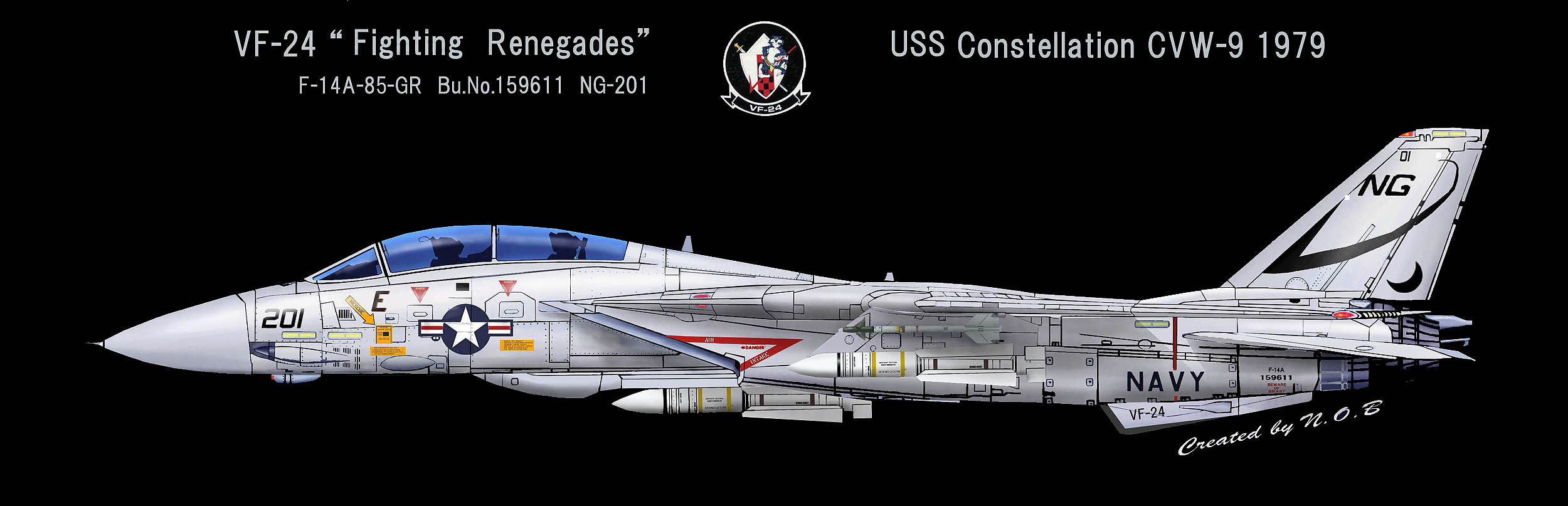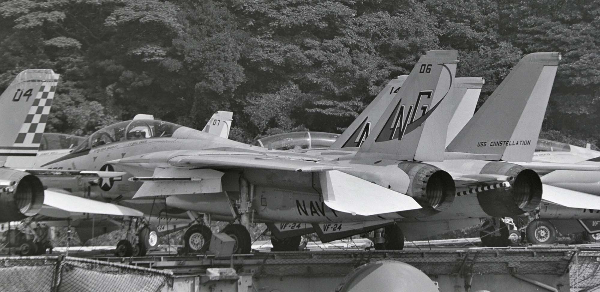 1955年の部隊創設時には部隊名はVF-211「Red Checkertails」だったが、VF-24となってこの部隊名を引き継いだもの。シスタースコードロンのVF-211と部隊名を互いに交換した形になった。また、多くのF-14飛行隊がF-4ファントムからの機種転換だったのに対し、F-8クルーセーダーからF-14Aトムキャットに機種転換した珍しい部隊でもある。1977年10月10日〜25日の間USSコンステレーション横須賀寄港と共に厚木に展開したので、多くのマニアが目にする事ができた。また1977年9月15日の三沢基地のオープンハウスには、NG-200が飛来展示されている。